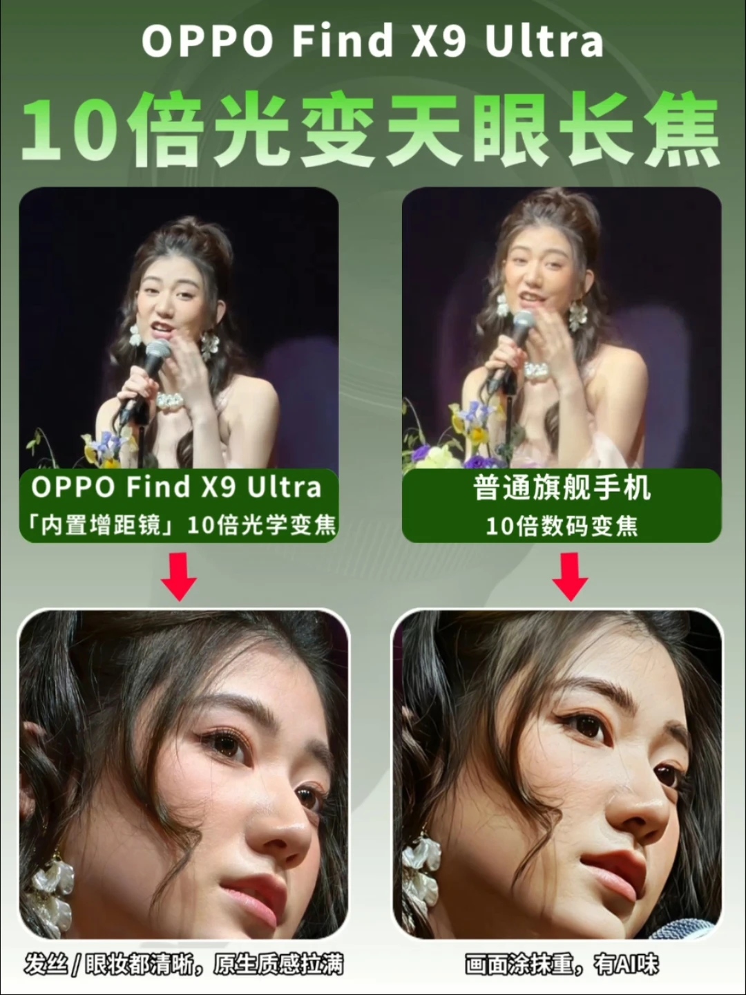 ✨行业罕见的原生10倍光变长焦,不会像数码变焦那样糊成 AI 脸!