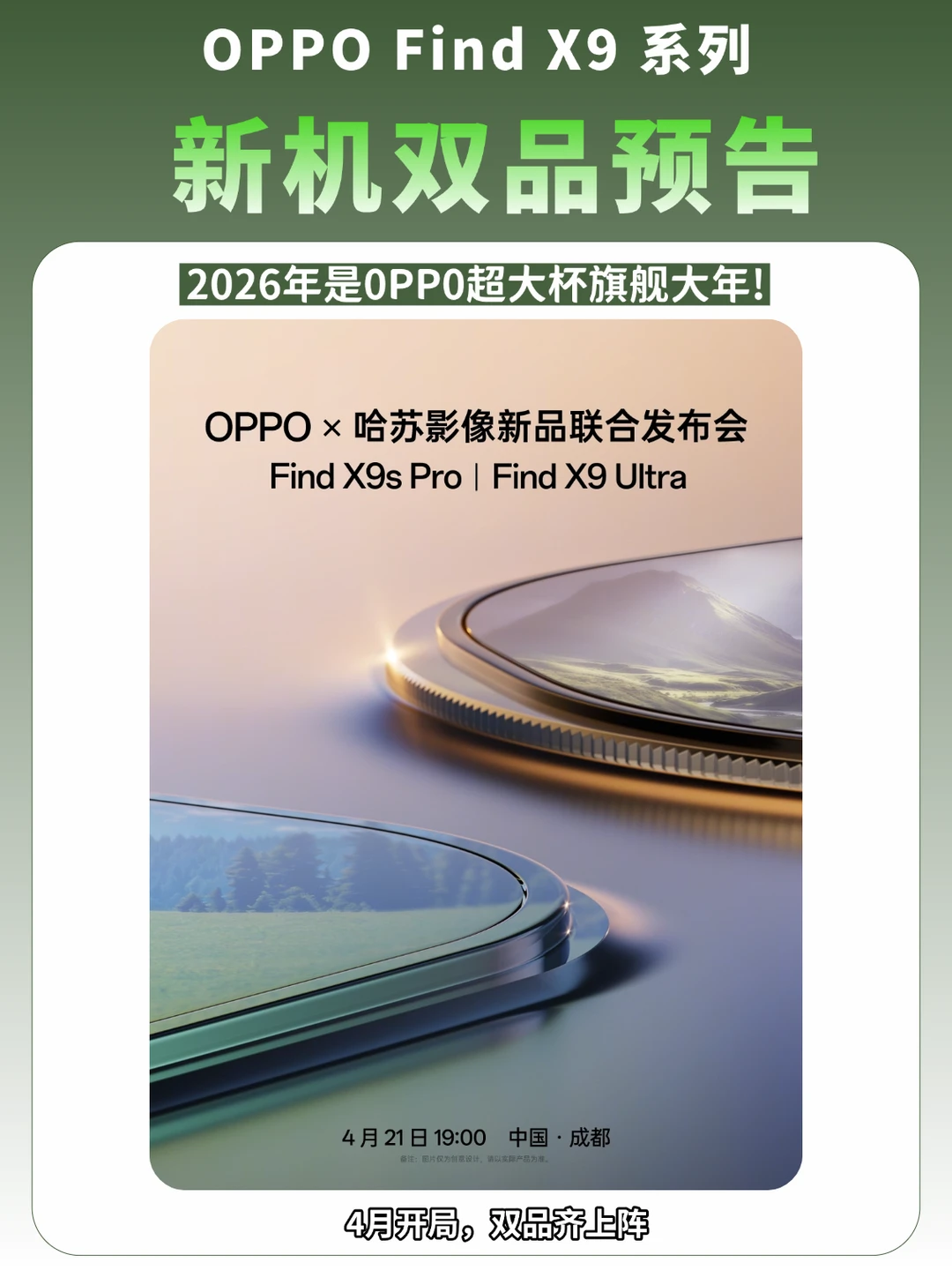 2026 属实是 OPPO 超大杯大年(顺带一提,在4月21日的哈苏联合发布会上,同期还有 Find X9s Pro 也同样值得关注)友商压力⛰️山大呀!