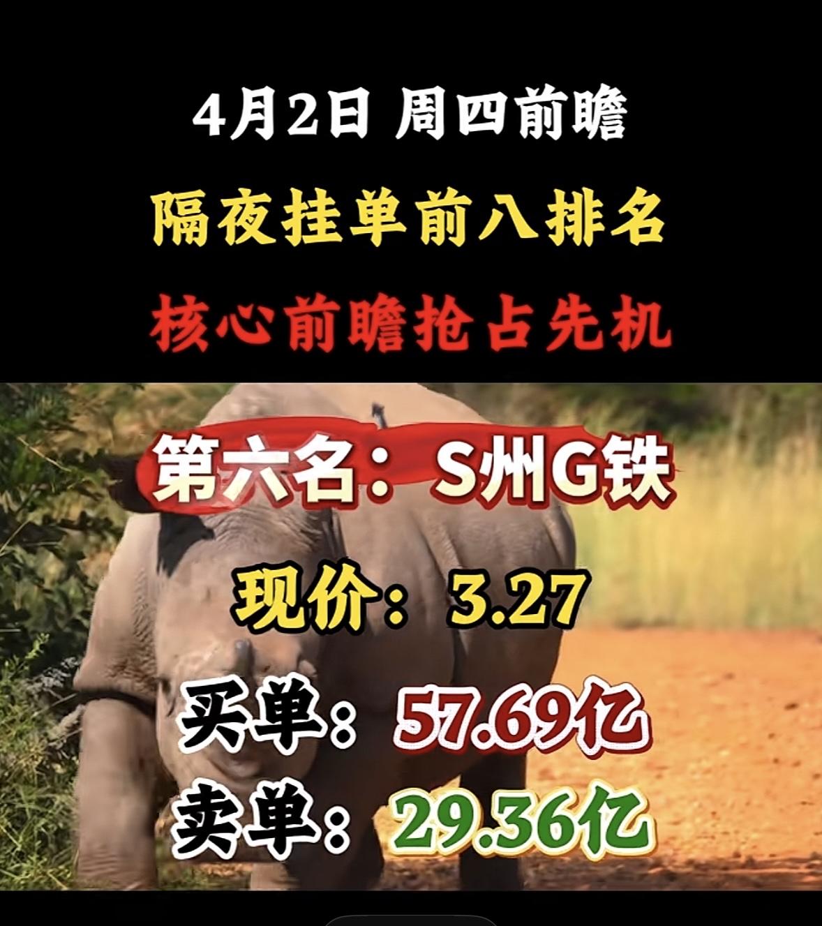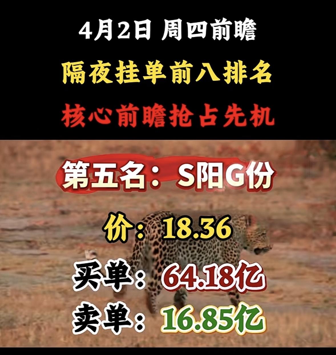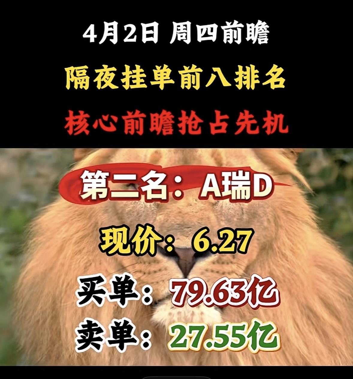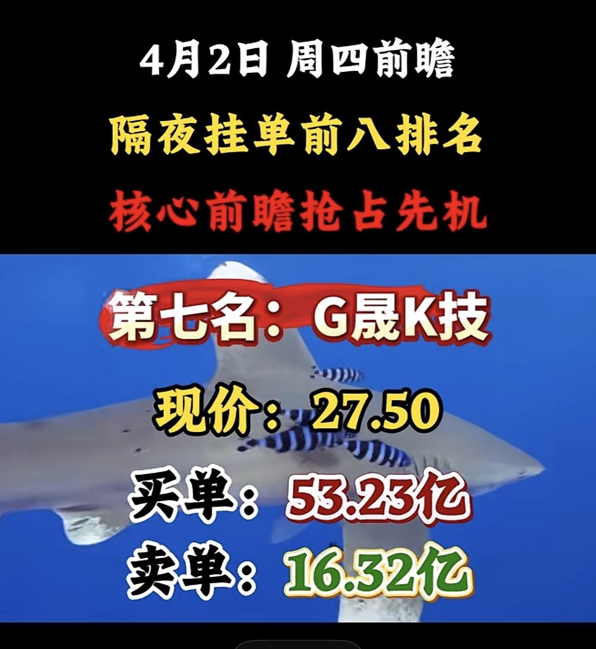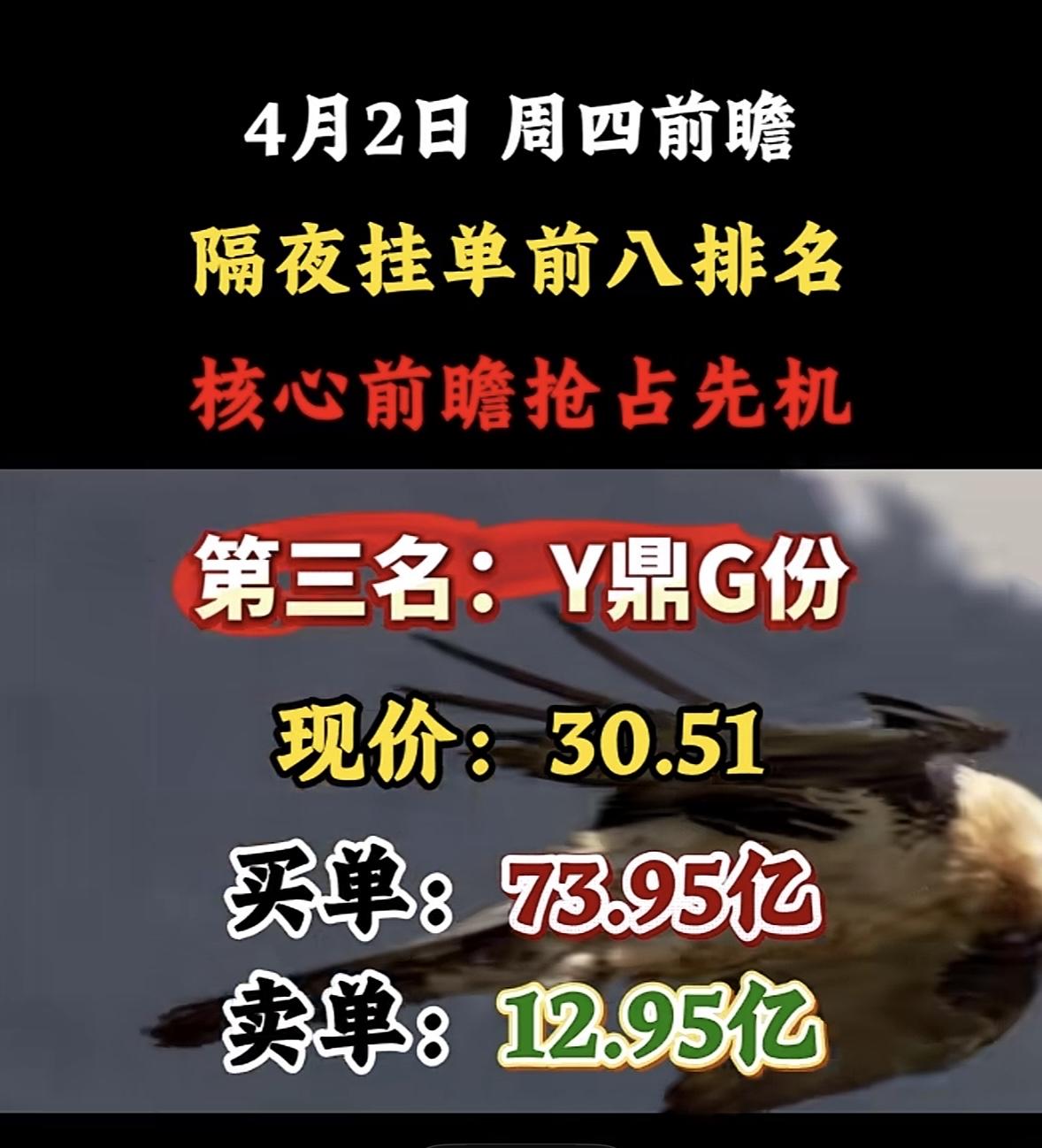 4月2日周四暗盘隔夜挂单排行榜出炉