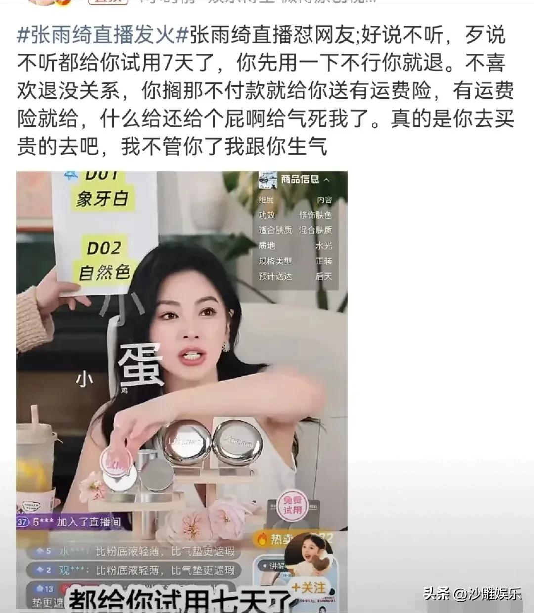 张雨绮,忍无可忍了! 4月1日愚人节,张雨绮直播翻车了——但这次,不是恶搞,是真崩了。 她原本在推销平价美妆,反复强调“7天无理由可退、赠运费险”,姿态已经放得够低。可直播间网友光看不买,怎么劝都油盐不进。 忍到最后,她直接炸了:“好说不听,歹说不听!不付款就给你送?运费险还给个P啊!气死我了!”随后撂下一句“你去买贵的吧,我不管了”,当场中断讲解,工作人员愣在原地,满屏尴尬。 这一幕,和3月复播时她刻意维持的冷静模样,简直判若两人。 表面看,是嫌网友磨叽不付款,但稍微扒一扒她这几个月经历的事就知道——这场发火,根本不是脾气急,而是长期压力的总爆发。 开年以来,葛晓倩实名举报她代孕、插足婚姻,对方甚至晒出孩子出生仅隔85天的公证证据。张雨绮这边呢?只靠几张旧孕照辟谣,始终拿不出出生证明自证。直播间全程屏蔽“代孕”“葛晓倩”等关键词,满屏控评,正面回应?不存在的。 事业层面更是肉眼可见地崩:辽宁春晚被除名、多个品牌解约、影视综全被拒,直播带货几乎成了她唯一的收入来源。 风波前,她单场销售额轻松破亿,现在直接腰斩到5000万,合作品牌从几十家掉到不到10家,评论区还天天被抵制。 更尴尬的是,早年那句“699元买不了一双袜子”的炫富言论,现在被反复翻出来对比——当初觉得便宜货配不上自己,如今却在直播间里拼命推销百元美妆,卖力到情绪失控。 这种反差,被网友精准吐槽:“当年699买不起袜子,现在99求着别人买,这落差比电视剧还精彩。” 从高高在上的“贵妇”人设,到现在被现实逼到怼网友求下单,张雨绮这场直播事故,本质上不是一个明星“脾气差”的问题,而是一个人被舆论、事业、收入三重夹击后,连装都装不下去了。 张雨绮这波操作,说难听点,是“崩”得彻底,但说实在点,也是真实到扎心。 她不是不知道要体面,是真的被逼到没路可走了。网友不买账,品牌撤干净,舆论压死人,直播成了最后一根稻草,她连这根稻草都抓不稳的时候,还能指望她有多冷静? 只不过,观众向来不买单“委屈”。你越是急,越是被看作“吃相难看”;你越是解释,越是被解读成“人设崩塌”。 你怎么看?