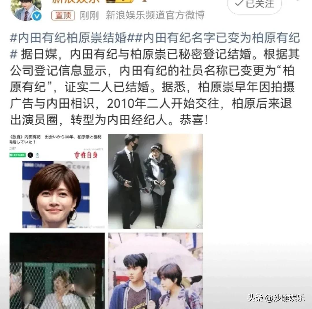 今天娱乐圈最大的喜讯传来! 4月1日这一天,娱乐圈可谓是热闹非凡,各种真真假假的消息满天飞,看得人头晕目眩。 就在大家以为这一天要在“狼来了”的故事中结束时,没想到傍晚时分,一记实锤从天而降,直接炸翻了整个日娱圈——那个我们青春里的“江直树”柏原崇,和“女神”内田有纪,竟然真的修成正果了! 这次可不是空穴来风,实锤硬得不能再硬了。据日媒爆料,有眼尖的网友扒出了内田有纪所在公司的登记信息,原本的“业务执行社员 内田有纪”已经悄悄变成了 “业务执行社员 柏原有纪” 。 在日本,这可不就是板上钉钉的已婚标志吗?这招“悄咪咪改姓”的操作,直接把这场16年的爱情长跑画上了最圆满的句号。 说起这对“世纪CP”,那真是老天爷写好的剧本。两人的缘分早在90年代就埋下了种子,因为拍摄广告相识,后来各自经历了婚姻的起落,兜兜转转,在2010年正式确定恋爱关系 。 最让人破防的是柏原崇,那个曾经高冷的“入江直树”,在现实中做出了比偶像剧还浪漫的决定——他直接退出演员圈,转型成了内田有纪的经纪人。 这是什么神仙操作?既是恋人,又是事业伙伴,他把守护她的日常,真真切切过成了现实版的偶像剧。 想想看,当年我们在《一吻定情》里被那个清冷傲娇的直树迷得神魂颠倒,在《花样男子》里被飒爽亮眼的内田有纪掰弯,谁能想到十几年后,这对荧幕上的“意难平”,竟然在现实中给我们来了个“超级售后”! 这次婚讯曝光后,网友们直接炸开了锅。有人感叹:“这才是真正的纯爱战士!一个退圈护航,一个在事业里发光,这种‘从戏里甜到戏外’的剧情,编剧都不敢这么写!” 。 更有网友深扒细节,提到柏原崇在最近的生日互动中,曾笑称内田有纪的性格其实很像《一吻定情》里的琴子,活泼又直率 。 这波操作直接把粉丝甜到齁,大家纷纷直呼:“原来入江直树最后还是娶了他的琴子,我的青春真的圆满了!” 说实话,在如今这个快节奏、动不动就“塌房”的娱乐圈,能看见这样一对神颜CP,用十几年的低调陪伴来诠释爱情,真的太难得了。这不仅是一段感情的瓜熟蒂落,更是对我们青春记忆的一次温柔告别。 祝福“柏原有纪”和柏原崇,感谢他们让我们相信,真正的爱情,即使迟到,也绝不会缺席!