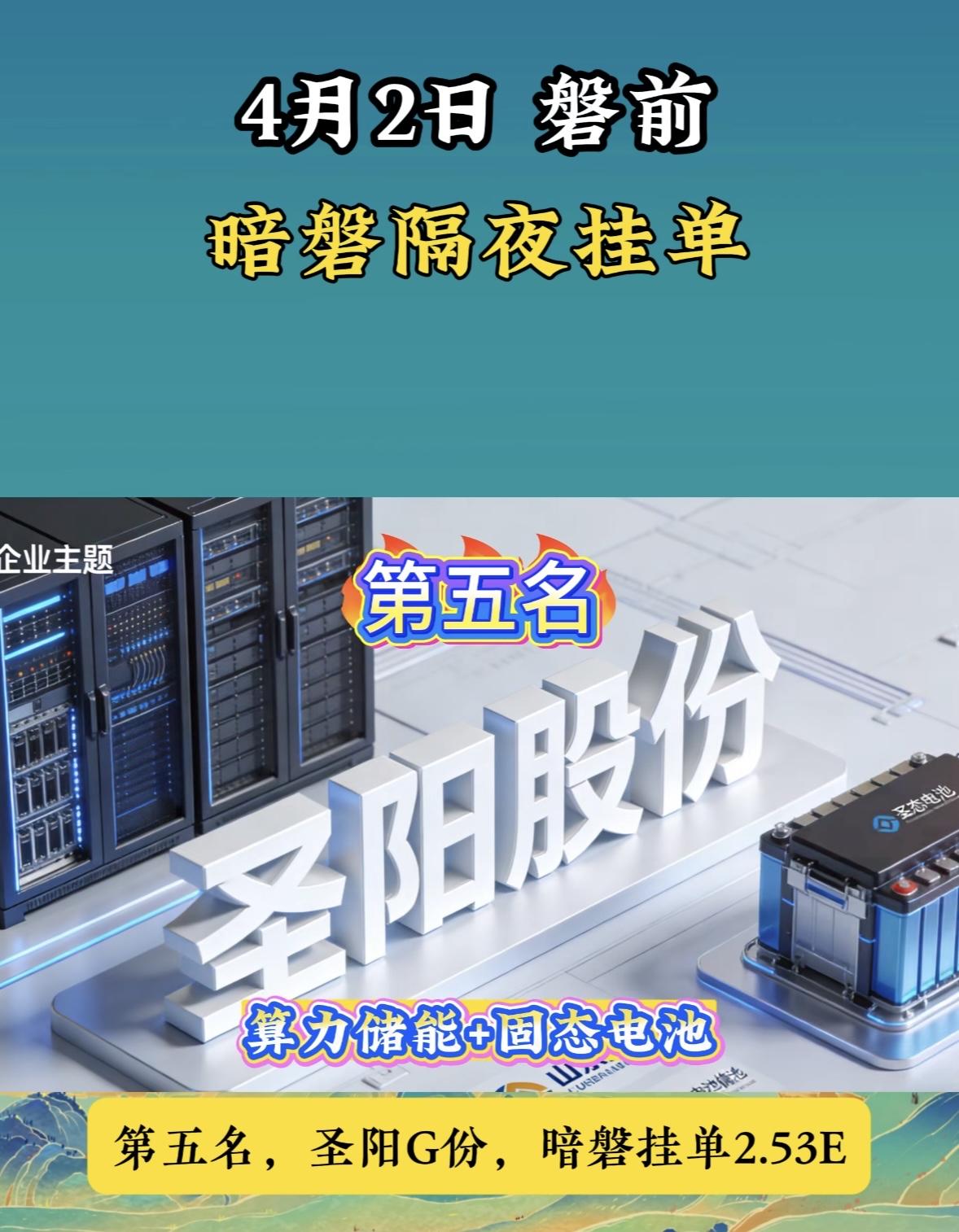 圣阳股份以82.99亿的隔夜大额挂单位列第四,它涉及储能和电力领域。排在前面的神剑股份挂单106.80亿 ,涉及商业航天和新材料;再升科技挂单95.09亿 ,和航天、核电有关。这样的暗盘情况,或许就是圣阳股份上榜的重要原因,后续走势值得关注。
