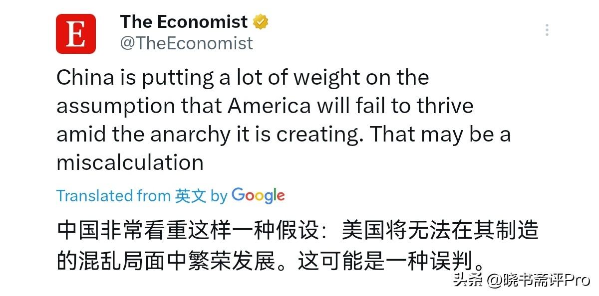 中国“错判”了美国!经济学人刊文声称,中国对美国可能“误判”了!4月2日,经济学人刊文表示,中国的顾问、学者、专家以及现任和前任官员。几乎所有人都认为这场战争是美国犯下的一个严重错误。该文声称,中国之所以置身事外,是因为中国理解拿破仑·波拿巴在奥斯特里茨战役中,面对敌军放弃高地时所说的那句格言:“永远不要打断正在犯错的敌人。” 但经济学人表示,中国在很大程度上强调了这样一种假设,即美国将无法在其正在制造的混乱状态下繁荣发展。但这可能是一种“误判”。对于经济学人的论调,我们怎么看呢?很显然,经济学人似乎不太同意美国正在犯严重错误的判断。但是,请问美国难道是在做一件正确的事情吗?如果美国以雷霆之势让伊朗屈服,或许美国霸权声威将大振。但现在呢?美国收到了这种战略效果吗? 很显然,并没有。如果这不是失败,犯错误,那什么是犯错误。美国一开始不是要伊朗无条件投降吗?美国实现了这个目的吗?再者,经济学人不认可“美国将无法在其正在制造的混乱状态下繁荣发展”,这个结论。当然,我们不得不承认,西方国家通过战争,劫掠,征服,掠夺让本国变得更加强大,有着丰富的经验。但是,前提是他们要在战场上得手。 请问,美国现在得手了吗?战争是需要进行成本和收益核算的,如果战争的成本远远超过收益,这对于国家的发展是负担,是拖累。西方世界现在难道不明白一个基本的常识吗?那就是穷兵黩武将大幅度消耗国力。真正的误判,是西方媒体依然迷信:霸权可以靠武力续命,制造外部混乱可以转化为本国优势,透支国力能换来长久繁荣。但,这种迷思,也到了要破碎的时候了。