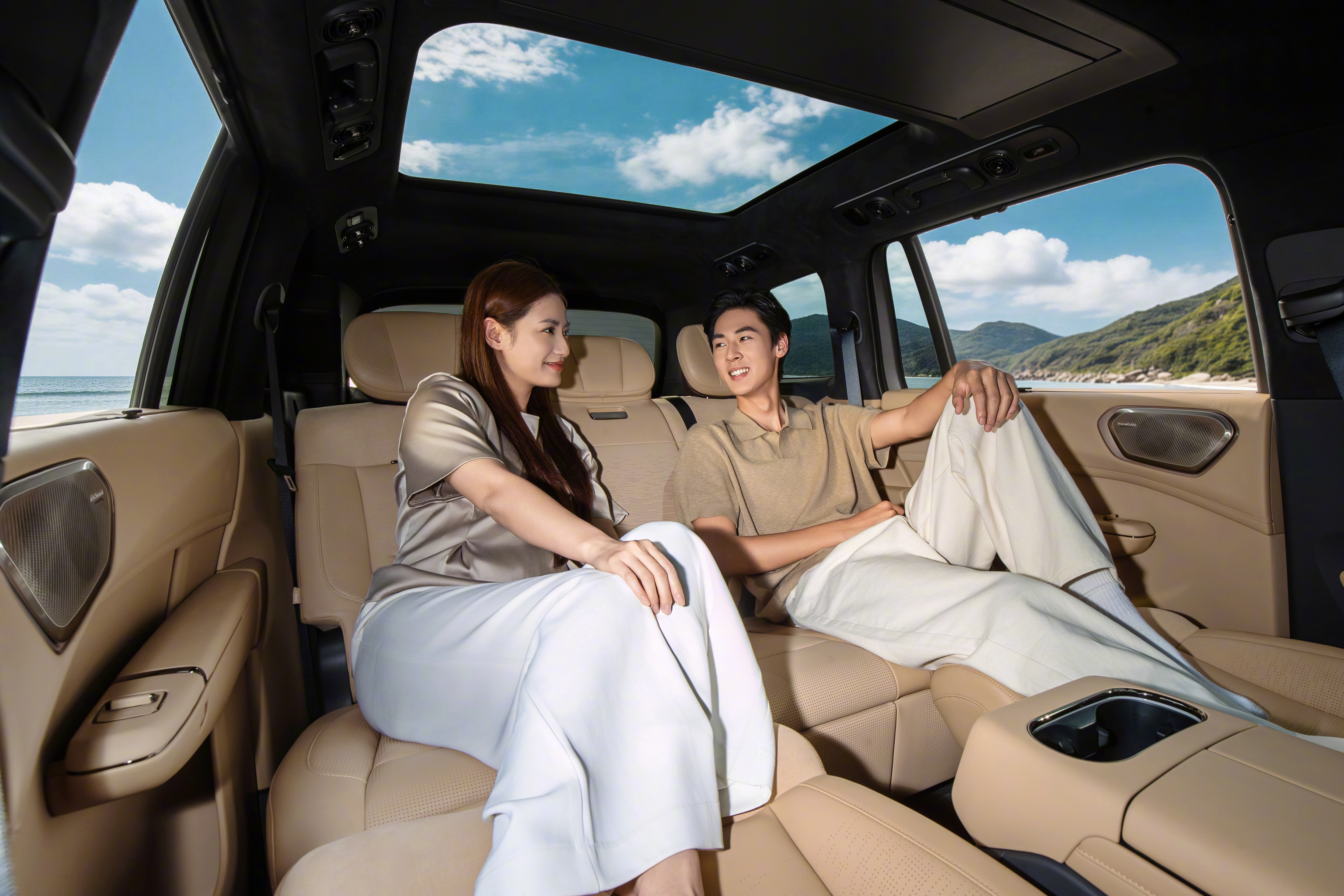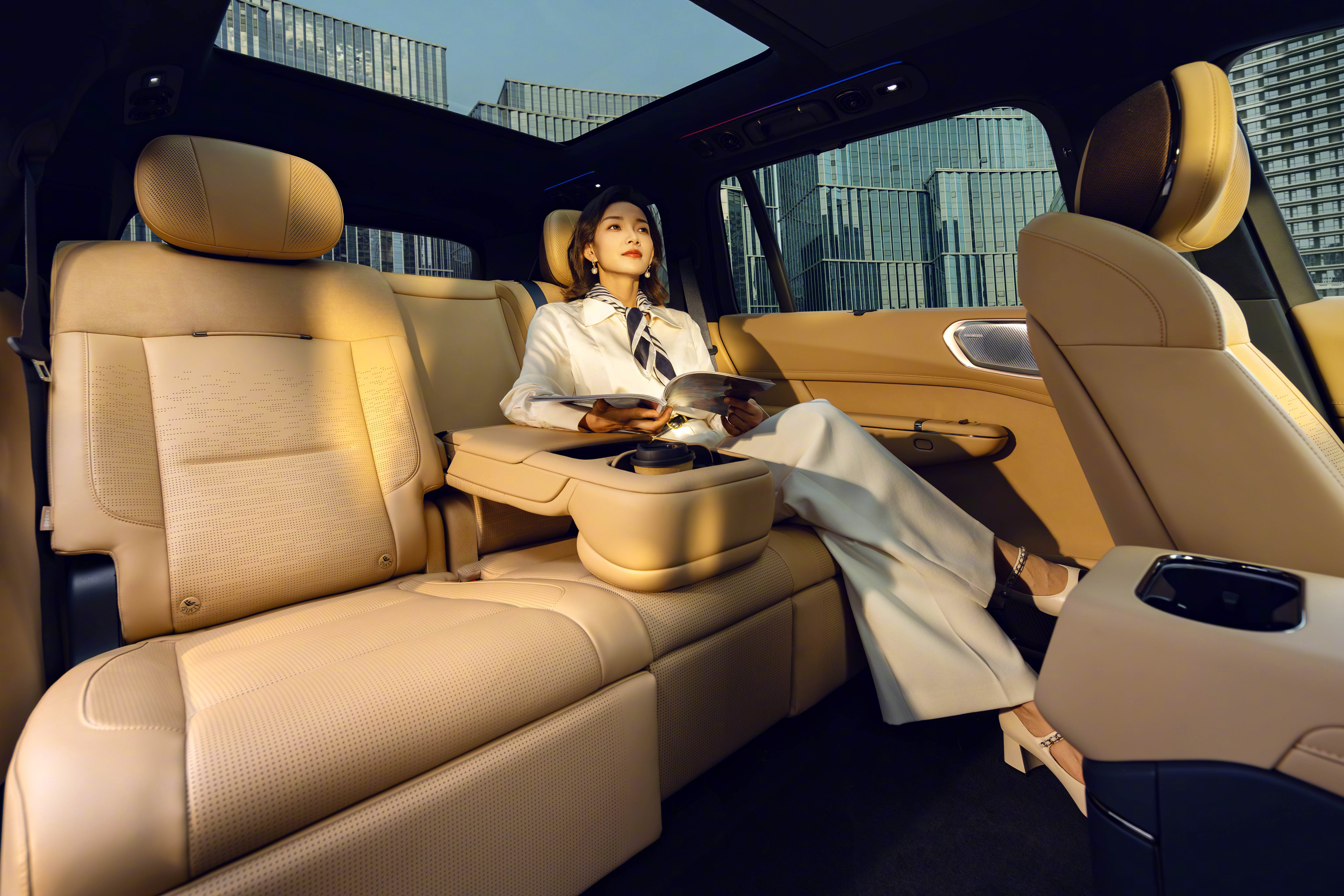 它的场景切换十分灵活,既能变身为灵活大四座,也能回归奢享大五座日常。两人出行时,秒变头等舱大四座,宽阔腿部空间搭配多功能中央扶手,无线充电、专属杯托等细节尽显高级感,商务接待也毫不逊色。还有同级独有的二排儿童床模式,腿托抬升后衔接处近乎平整,可拓展出1.35m×0.85m的专属休憩区,9岁孩子也能安稳躺下。