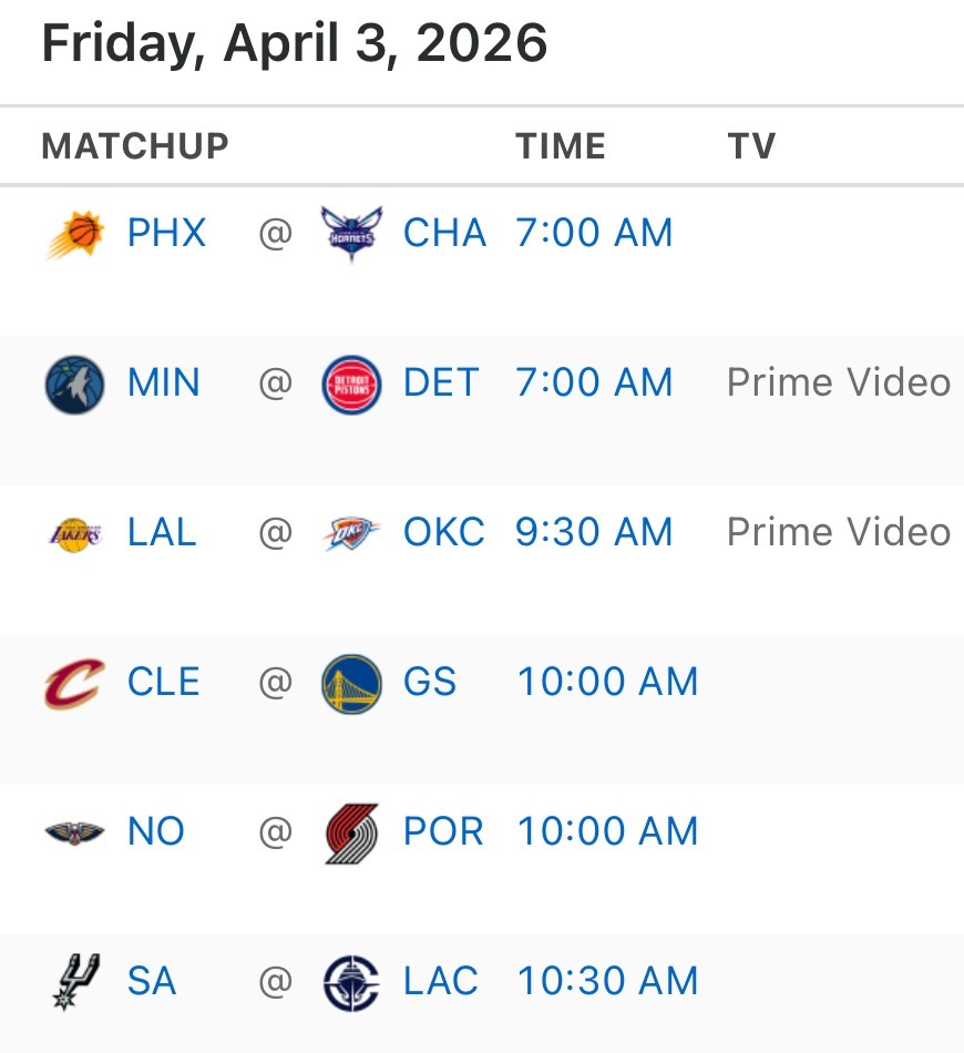 森林狼vs活塞,湖人vs雷霆(全美直播),马刺vs快船