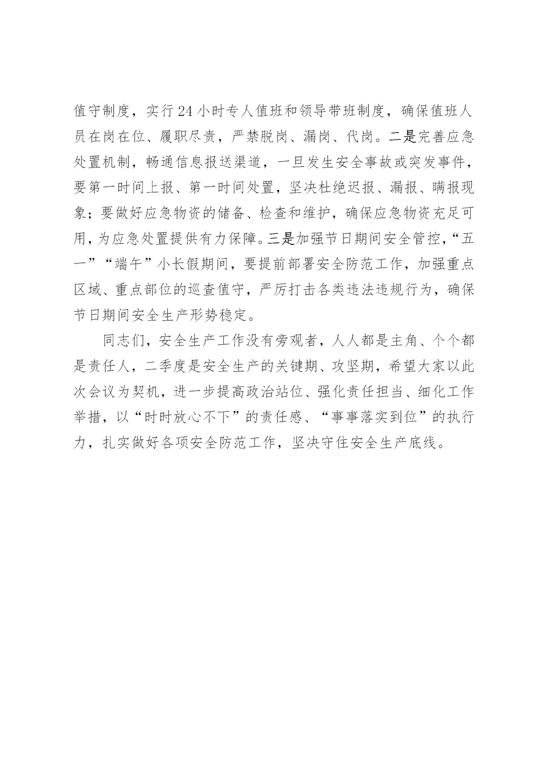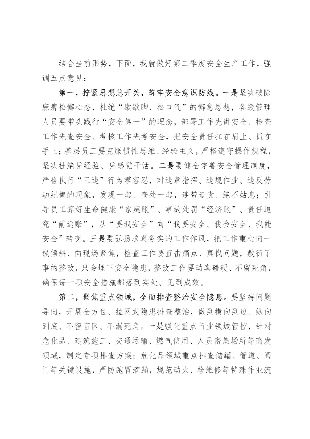 体制内:二季度安全生产工作部署讲话材料