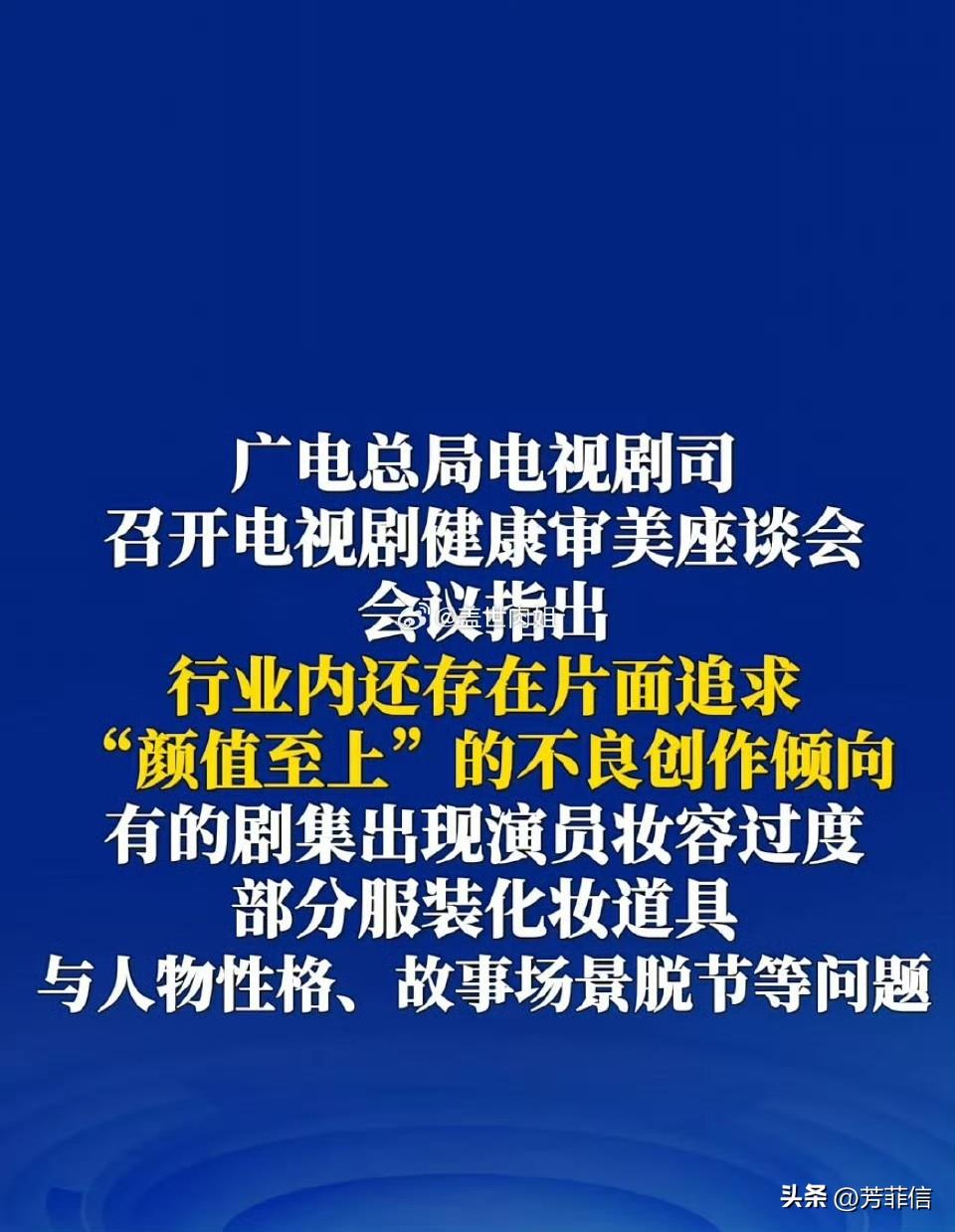 4月2号,广电召开了针对“粉底液将军”现象的座谈会,直言“有的剧集出现演员妆容过度,服化道与人物性格、故事场景脱节”,重点批评了行业内片面追求“颜值至上”的不良创造倾向。
