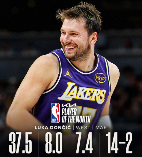 期间,东契奇场均37.5分8.0个篮板7.4次助攻,湖人14胜2负。