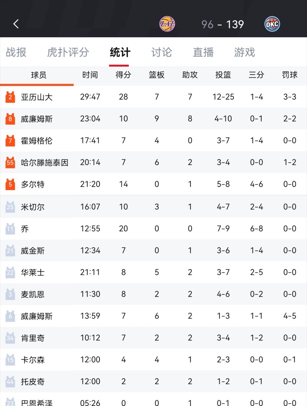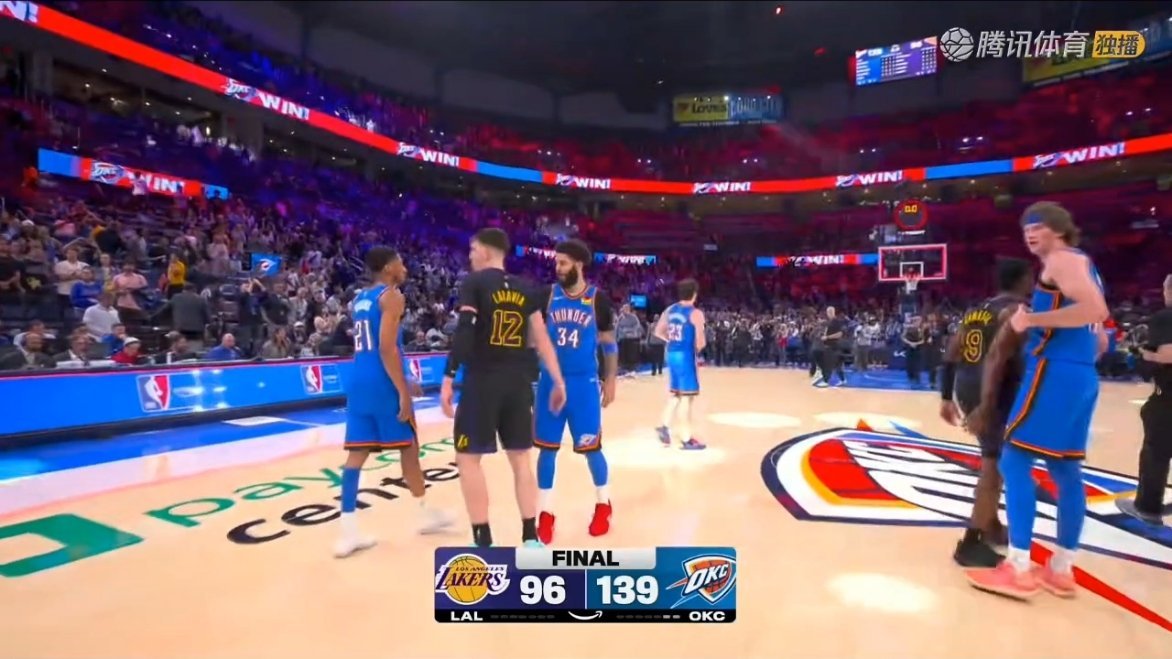 终于结束了,湖人本赛季最惨痛的失利。湖人vs雷霆