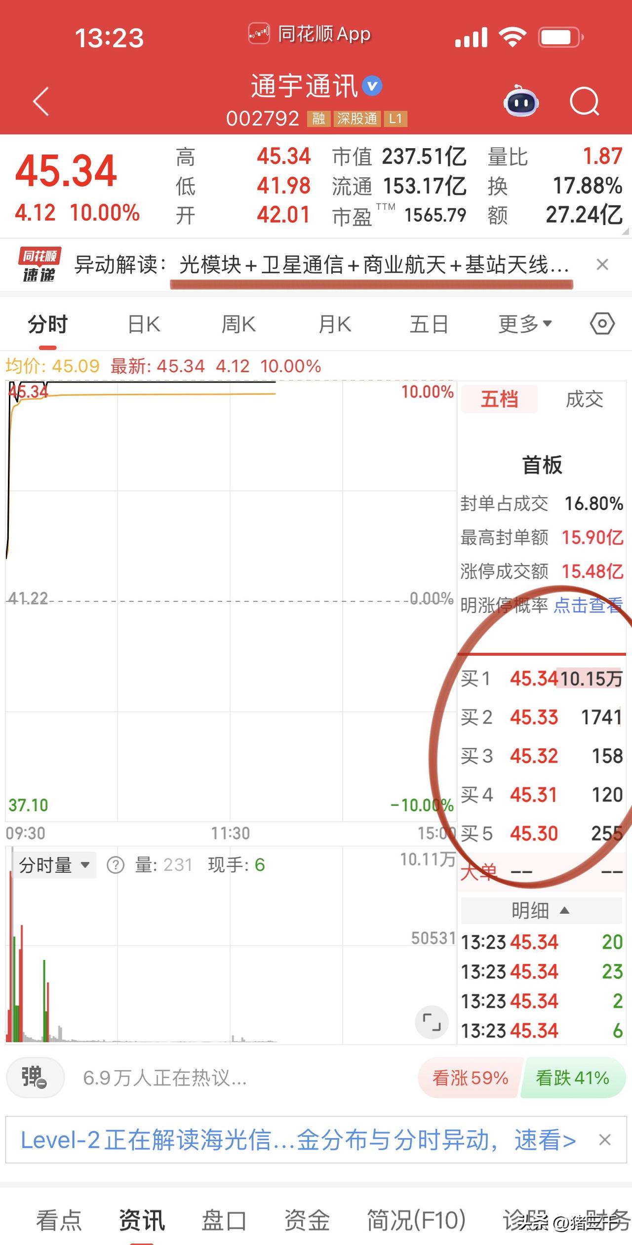 天龙三号发射失利, 带动商业航天午后加速下跌, 看通宇通讯会否开板? 毕竟今天通宇通讯跟着光通信逻辑走的。 三大指数午后翻绿力度加大, 从时间换空间的角度看: 整个4月财报季应该都是震荡盘整区。 消费医药这一次又承接失败了, 看来真要等2季度末-3季度! 4-5月重点看科技是否真的形成历史大顶? 从光纤情绪高潮, CPO、光模块再探前高的角度看, 不相信会跌的味儿越来越浓了… 上半年不好做的呀!