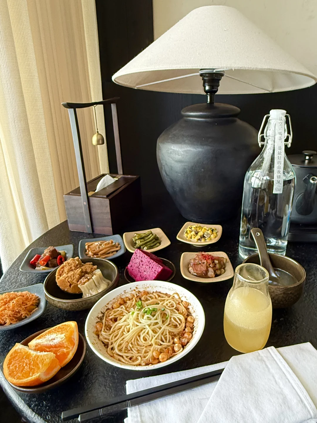 🍜这家民宿的餐食我也挺喜欢。双人早午餐主食可以自选,我们选的是麻辣小面和果蔬。小面香辣开胃,味道很在线,再配上果蔬、热汤和小点心,吃下来不会太腻,是真的能吃饱也好吃。🍰下午的小马绮梦·双莓下午茶 也不错。尤其是小蛋糕真的挺好吃,不是吃完就腻的那种,配草莓气泡水会很清爽,刚好能把甜味压一下,所以整套吃下来不会发齁。🫘晚上回房还有一碗红豆汤。洗完澡再喝一碗热热的,整个人都会松下来。这种细节很日常,但真的很容易让人记住。