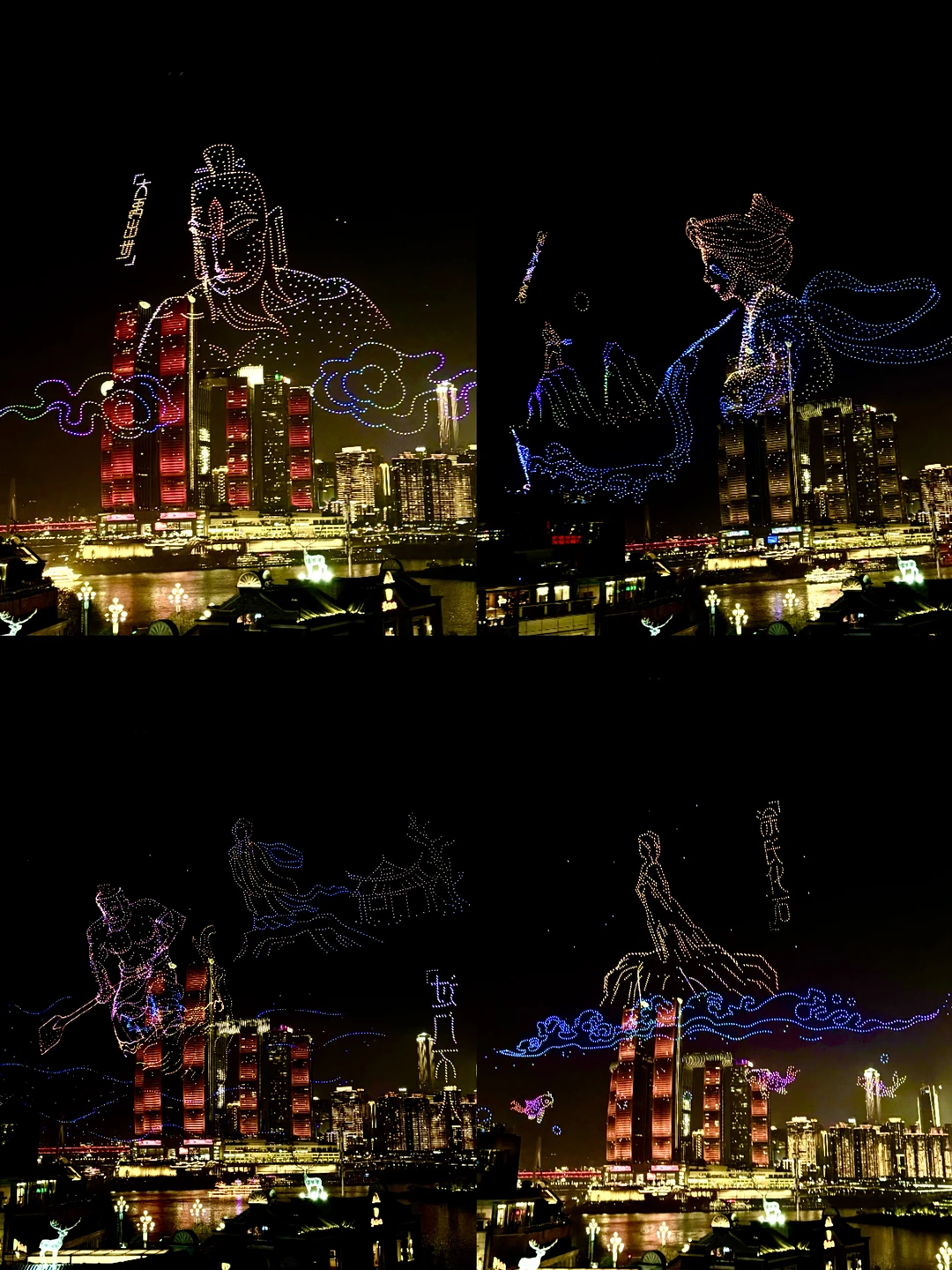🌃我很喜欢3楼江畔光廊。白天看江边,晚上看灯火,重庆那种层层叠叠的感觉一下就出来了。周六晚在那边,还看到《呼归石》主题无人机秀,大禹治水和涂山女守望的故事,一幕一幕被打到了夜空里。站在那里看,真的很值。
