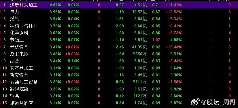 本就超跌的板块短期会有反弹上涨的预期。周五A股市场全线下跌,领跌的是煤炭开采,种植业,电力,光伏设备,养殖业,建筑装饰等。