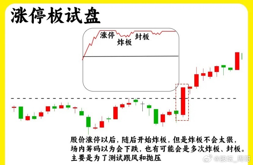 股价当天大幅上涨,拉出涨停板,但是盘口的封单量却很少,就导致了涨停封板以后,出现炸板回落,回调的幅度不是很大,处于一个高位,整个过程里,股价可能多次炸板封板。这就是主力涨停试盘,如果此时的抛压比较小,封板比较稳,那就说明主力试盘成功。
