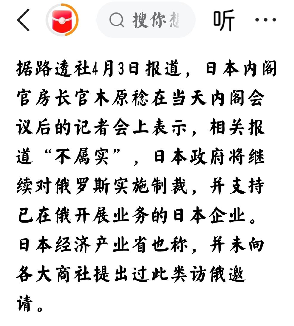 4月3日23:10,观察者网发文:“日本火速否认:没有派团访俄,制裁继续” 个人认为:持续反制日本,削弱日本的国力才是打击日本新军国主义的根本。 这需要专注,不要被外界的纷纷扰扰所迷惑,要坚定不移的专注于持续削弱日本的国力。 从经济上,从金融上,从科技上,从原材料上,从交通上,从旅游上,从舆论上,从各个方面持续不停的削弱日本,这才是最重要。