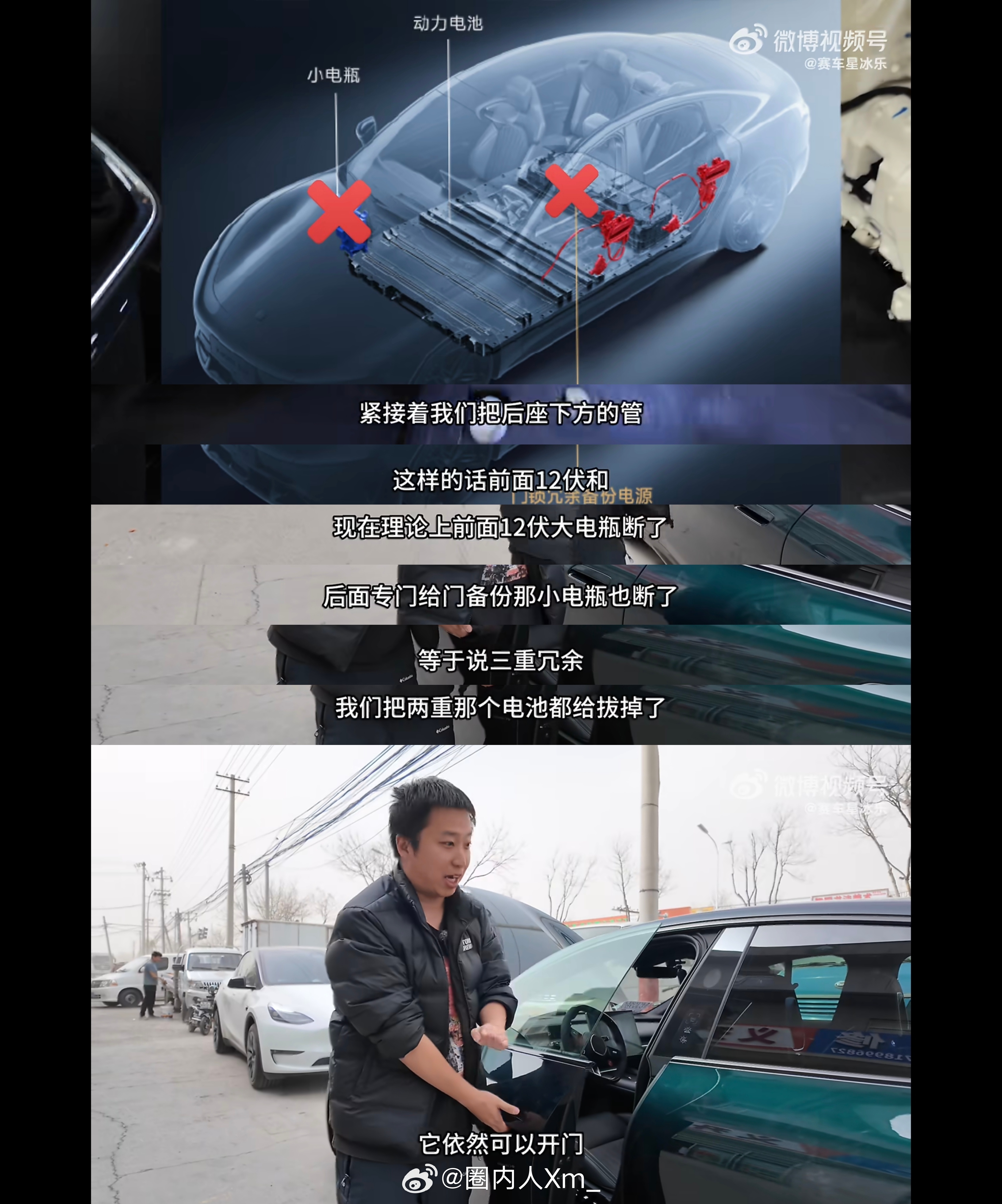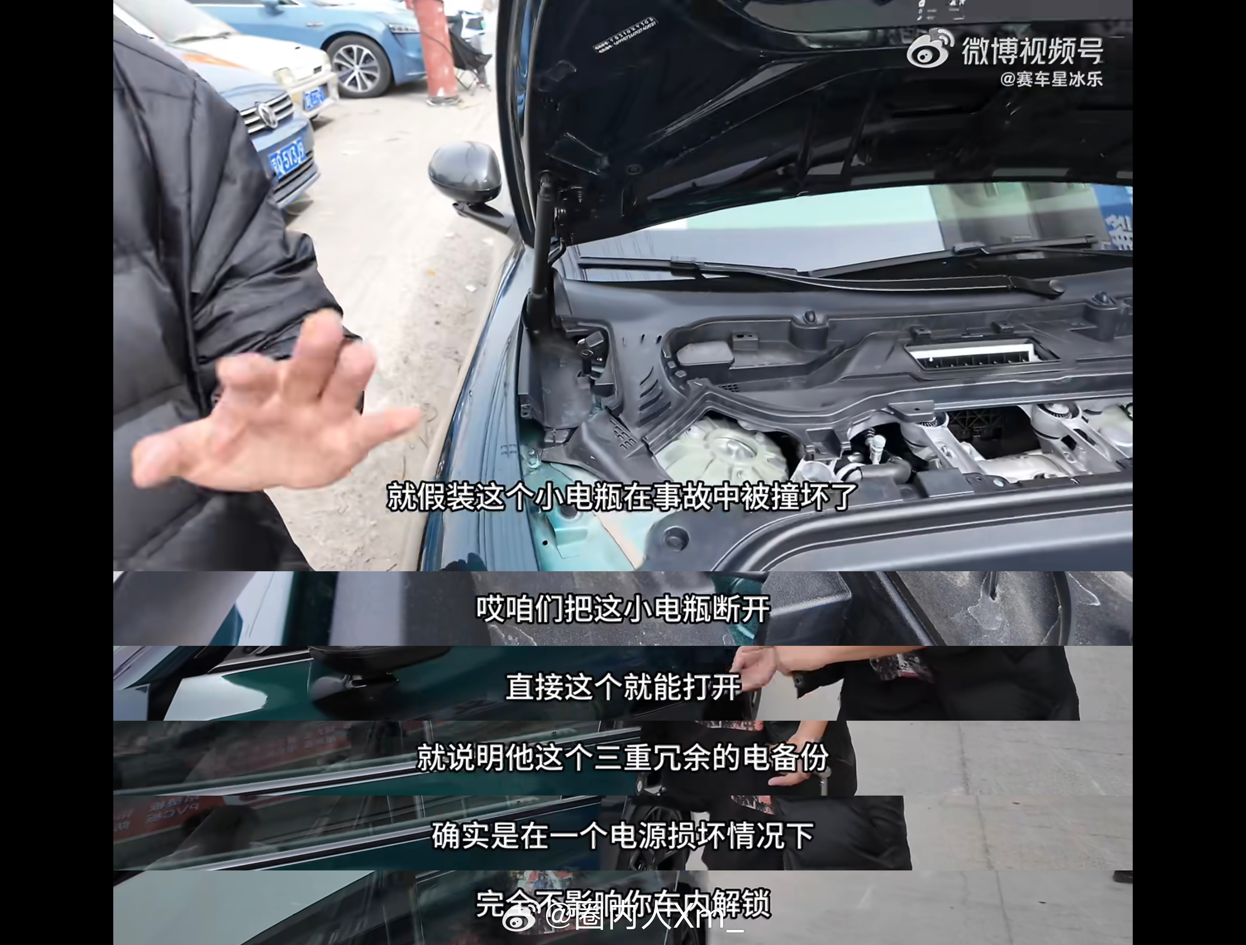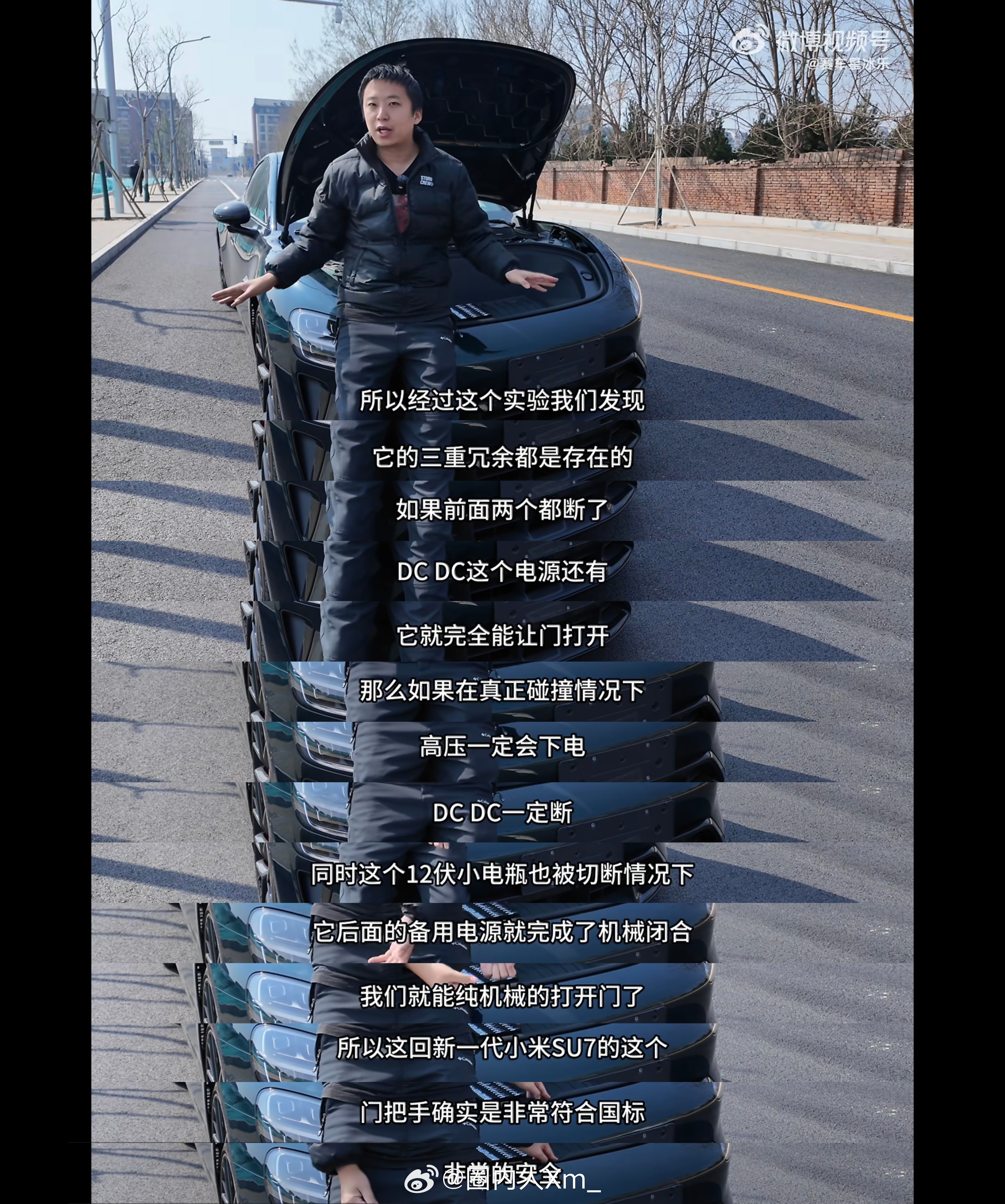 拥有车辆工程专业技术知识领域的老师,解析新小米SU7三重冗余门把手如何实现的他通过三种断电方式,对新SU7进行测试(图3、图4、图5),最后车门都顺利打开车门,并表示新SU7的门把手设计符合国标且非常安全。这和雷总说的雷军称新SU7门把手完全符合新国标一致。