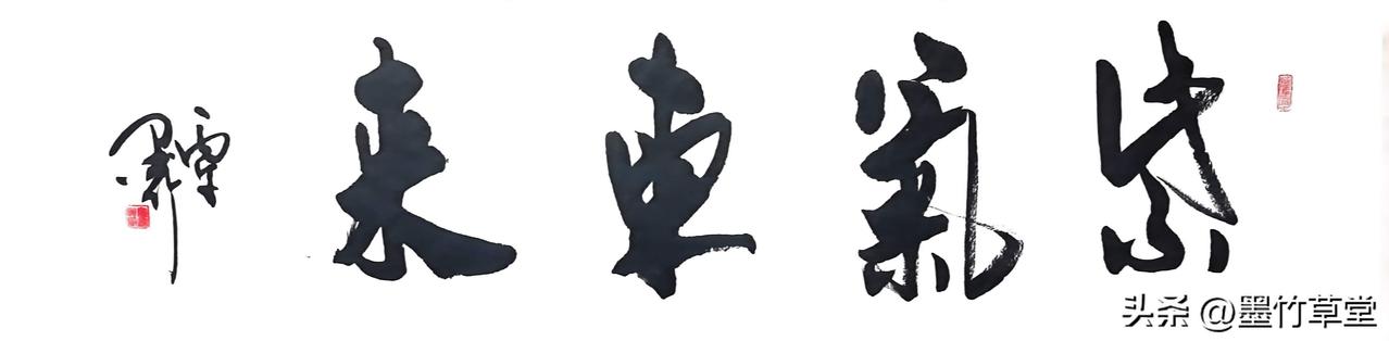 (四尺横条:138 x 34 cm),行草书法作品: 《紫气东来》 注:生宣纸,书写作品未装裱,软片折叠发货。