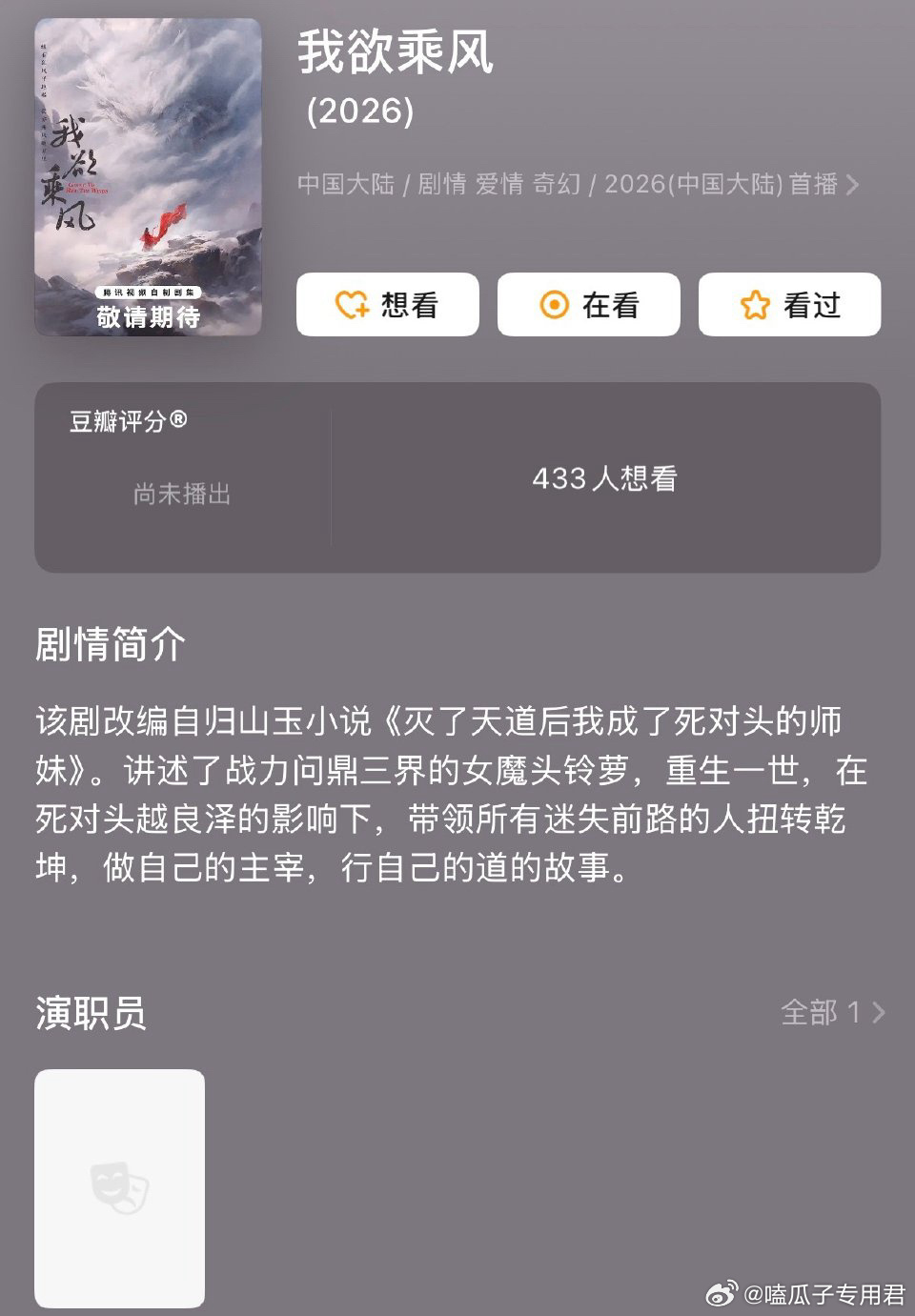 S+仙侠古装剧《我欲乘风》接触 虞书欣&田曦薇改编自归山玉小说《灭了天道后我成了死对头的师妹》制作团队:腾讯视频与新丽传媒联合出品