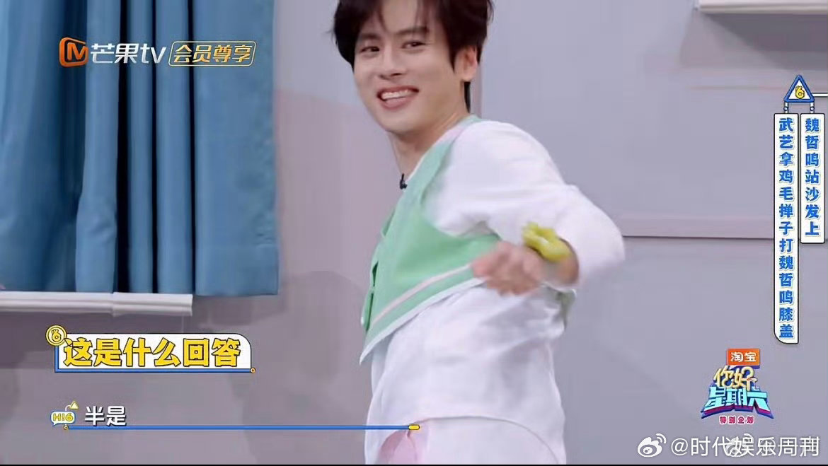 武艺跳起来打膝盖终于有画面了你好星期六武艺真的是天生喜剧人!跳起来打膝盖的画面太