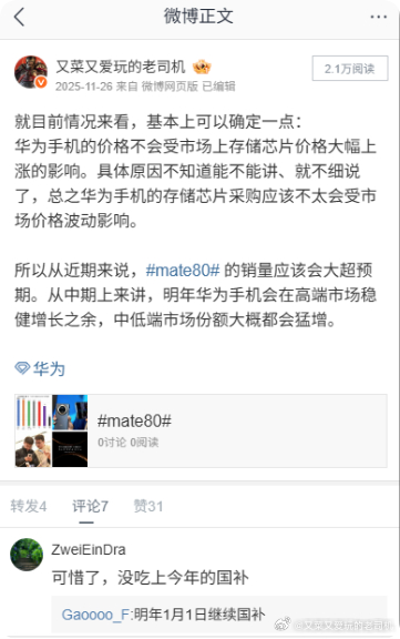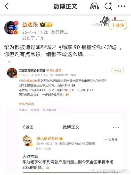 RD观察确认华为畅享90系列确定首销日销量核弹极爆炸:250K+!而整个市场大盘一般单日也就是65万左右,这么算就已经接近4成了,还要加上因为畅享90系列价格冲击下导致的观望。这个局面,去年我就已经提前预测到了,事实上,存储涨价现在还只是处于第一阶段。------------------------------------------有的人,大概早就忘记了华为被制裁前的2019年,以为被制裁之后的华为才符合他们的常识吧。