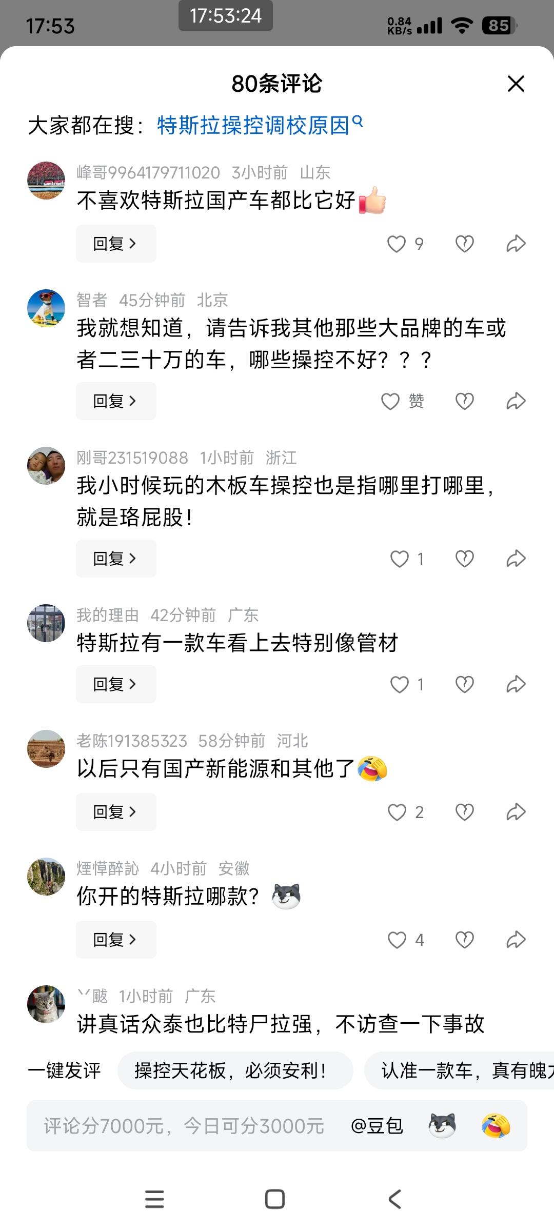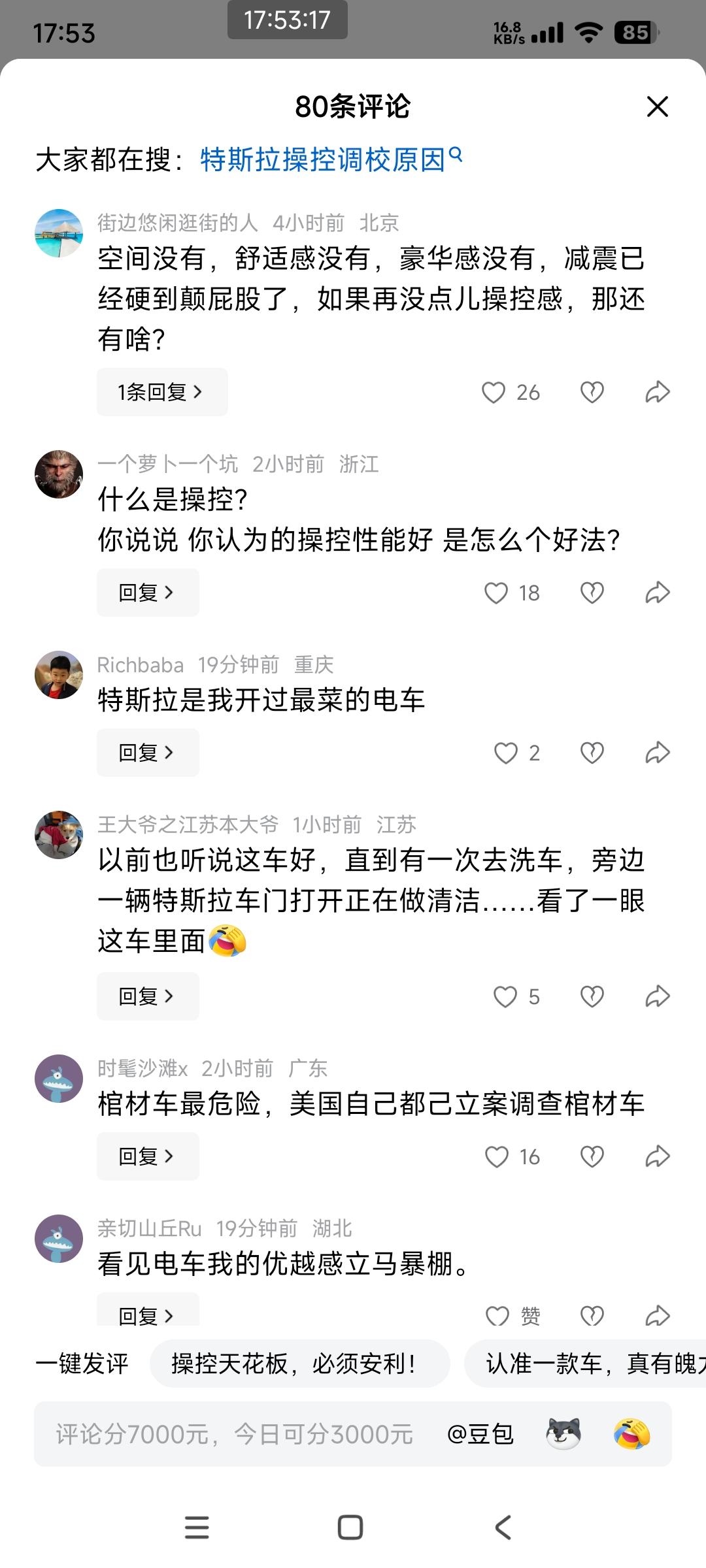 博主:真心话:特斯拉是我开过操控最好的车,秒杀所有油车,电车更是大神一般的存在,所以,我以后换车还是特斯拉。