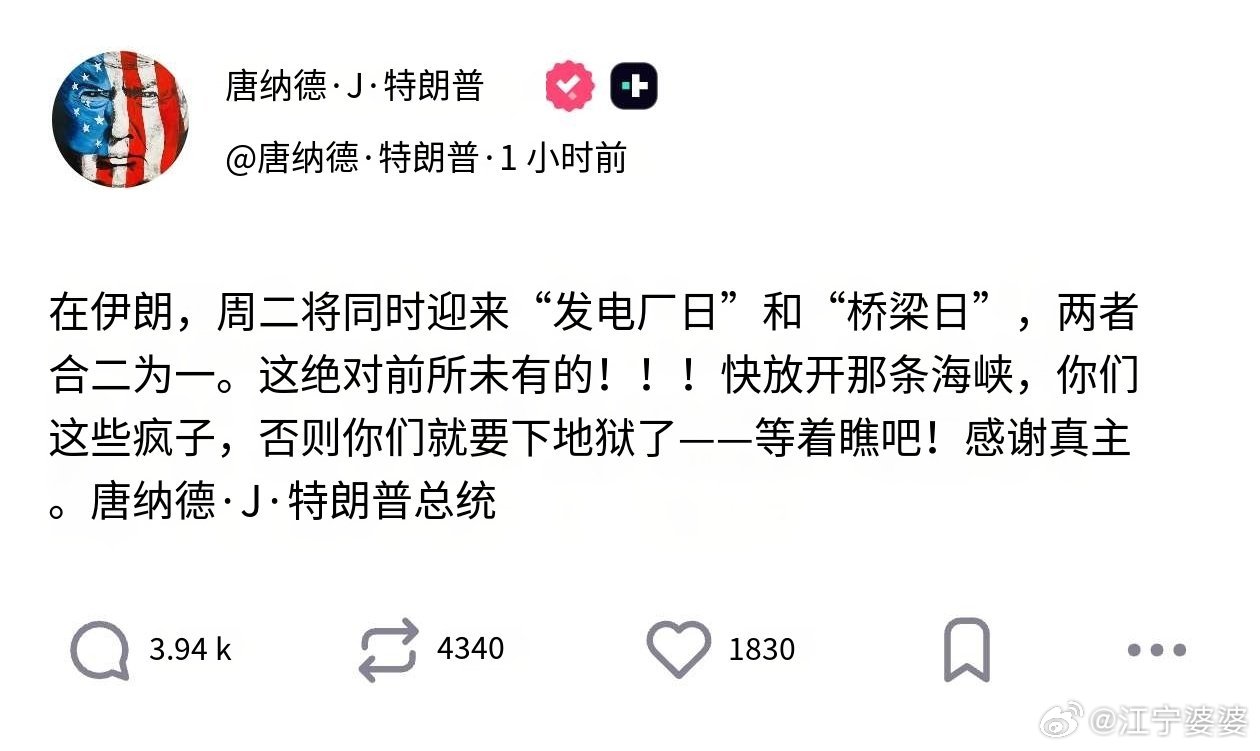川皇今天的起床气比以往更大一些,不,都不能叫破防了,简直是气急败坏,用了Fxck word脏话跪求伊朗打开霍尔木兹海峡。