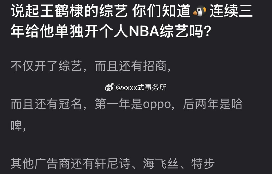 冷知识🐧连续三年给王鹤棣单独开个人NBA综艺不仅开了综艺,而且还有招商,还有冠名,都是王鹤棣的代言品牌