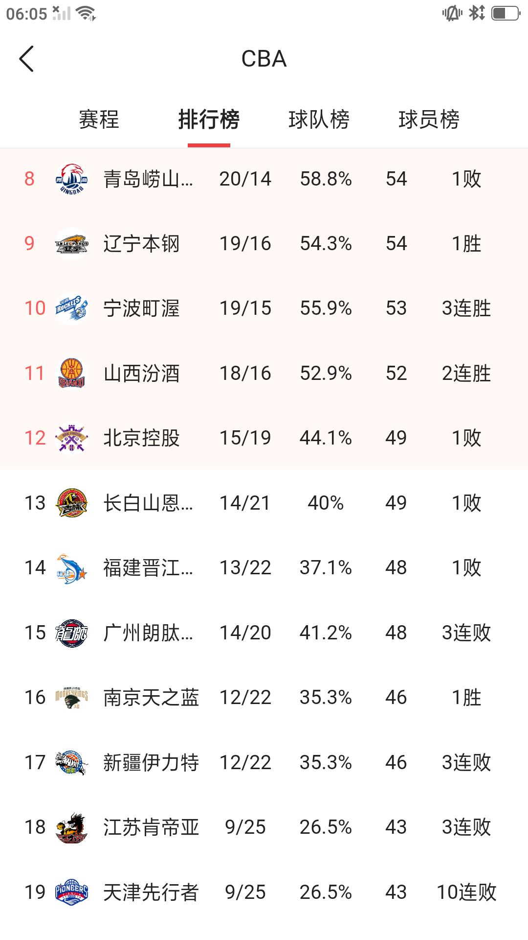 2025/26赛季CBA 常规赛即将接近尾声,季后赛席位争夺更加激烈,截止目前有多支球队积分接近,排名紧咬。常规赛最新战绩排名:上海久事31胜4负排名第一,浙江广厦27胜7负排名第二,广东东阳光23胜11负排名第三,深圳队23胜11负排名第四。北京北汽22胜12负排名第五,山东高速22胜12负排名第六,浙江稠州金租21胜14负排名第七,青岛队20胜14负排名第八。辽宁队19胜16负排名第九,宁波队19胜15负排名第十,山西队18胜11负排名十一,北控队15胜19负排名十二。吉林队14胜21负排名十三,福建队13胜22负排名十四,广州龙狮队14胜20负排名十五,南京队12胜22负排名十六,新疆队12胜22负排名十七,江苏肯尼亚9胜25负排名十八,天津队9胜25负排名十九,四川队0胜35负排名垫底。从目前战绩和积分排名看,排在前11名的球队基本锁定季后赛席位。第12名争夺非常激烈,北控,吉林,福建,广州龙狮这四支球队相互之间胜负差只有一到两场,都保留晋级季后赛机会。不得不说本赛季CBA 联赛是真激烈啊![赞]