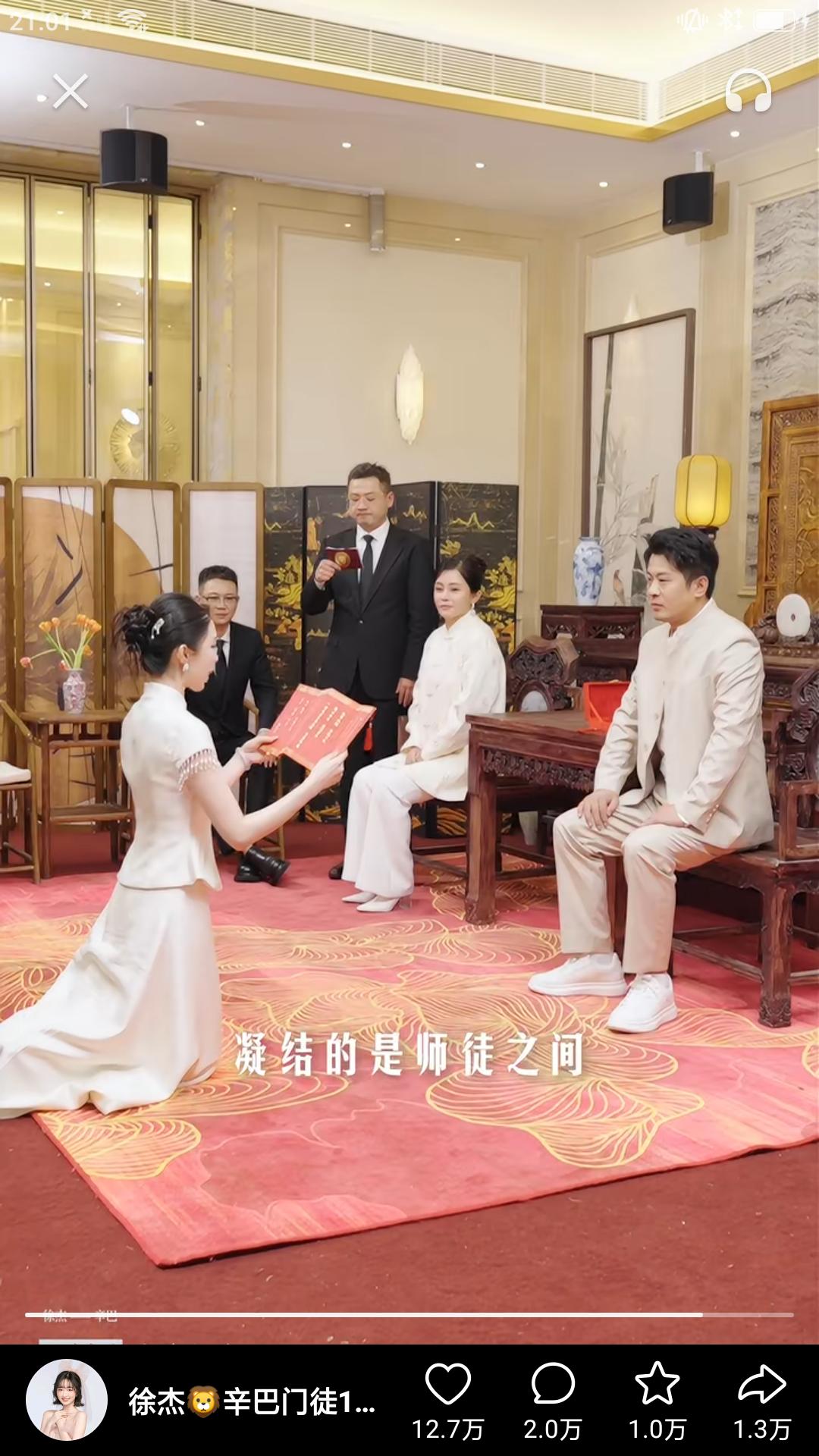 【互联网电商一哥辛巴退网后首次露脸,经历逆徒蛋蛋,猫猫背刺逆反伤痛后,再次收徐捷为徒,妻子初瑞雪和辛选合伙人蓝山,张小双现场见证。】昨天辛选集团副总裁,辛选超市店长,辛巴大徒弟赵梦澈前女友〔仙女徐捷〕用4000多万账号向全网发布拜师辛巴〔辛有志〕门下。在拜师仪式上徐捷跪地叩头,向师傅辛巴,师娘雪大敬茶和果品并宣读誓言。愿追随师傅和师娘把辛选继续做大做强。辛巴在互联网电商领域成绩有目共睹,徒弟几乎都是互联网超头部带货主播。自从猫妹妹,蛋蛋,韩佩泉,安九,安若曦等徒弟相继逆反,给辛巴身心带来严重打击,辛巴曾多次说过今后不再收徒。这次收徐捷为徒,完全是看到徐捷六年在辛选的成长,懂得感恩吧。