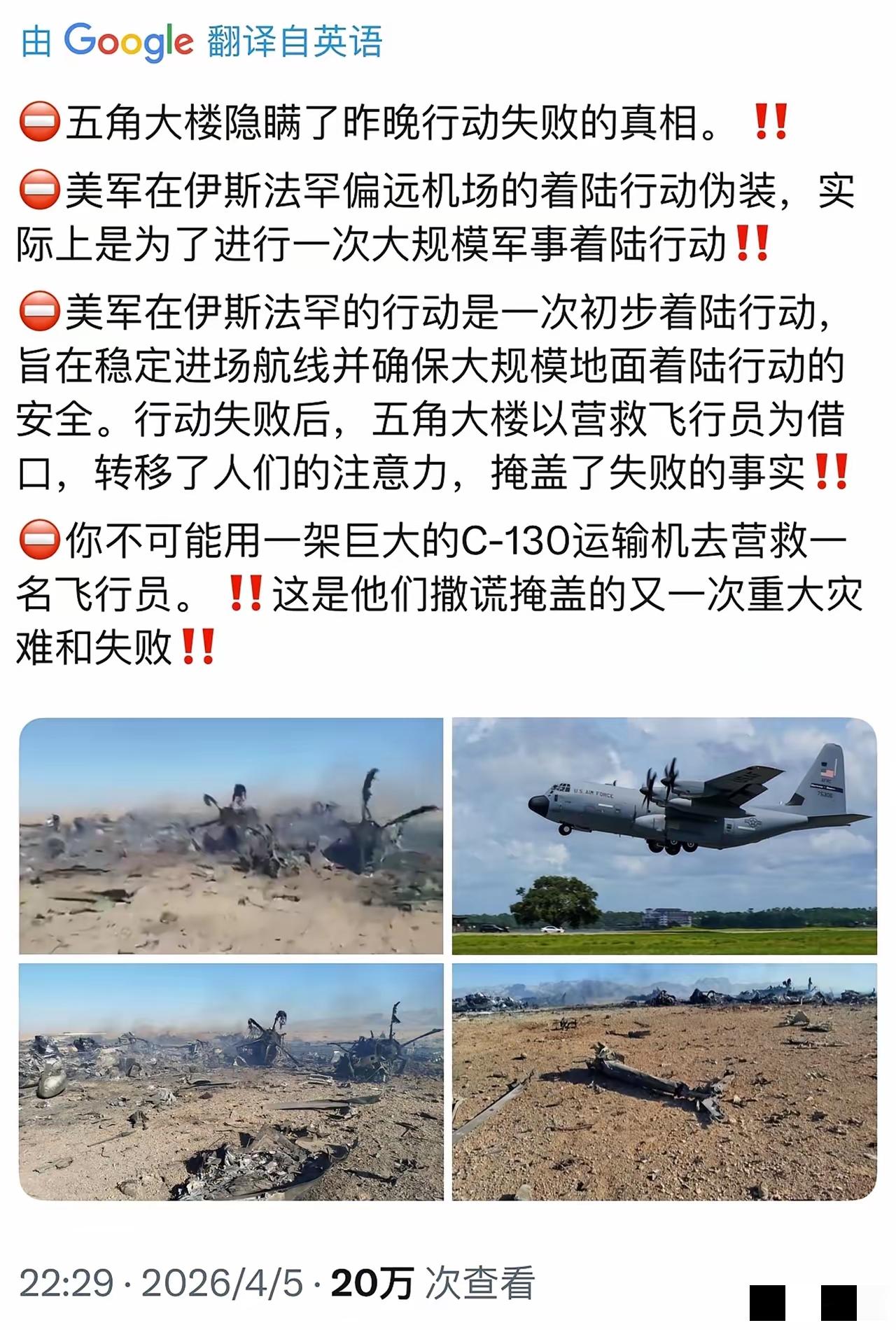 事件的真实意图,很可能正如网友分析的那样:美军在伊斯法罕偏远机场的着陆行动伪装,实际上是为了进行一次大规模军事着陆行动,旨在稳定进场航线并确保大规模地面着陆行动的安全。行动失败后,五角大楼以营救飞行员为借口,转移了人们的注意力,掩盖了失败的事实!