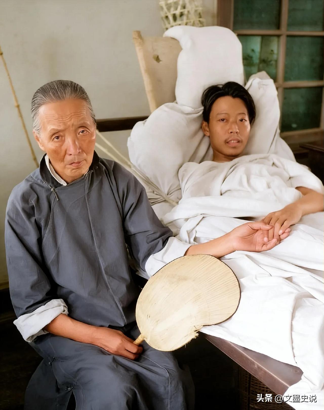 武馆里,两人身着白衣,一招一式透着刚劲;饭桌上,姑娘们围坐吃饭,碗碟里盛着热气腾腾的饭菜;墙根下,学生们捧着碗吃饭,阳光在他们身上投下斑驳的影子。木匠在昏暗里刨着木头,木屑簌簌落在地上;病床上,老人握着年轻人的手,蒲扇轻轻摇着,藏着无声的牵挂。