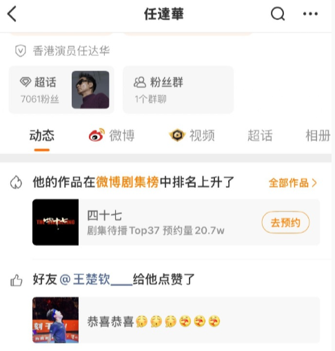 澳门世界杯男单决赛,王楚钦夺冠。任达华发博祝贺王楚钦夺冠,随后王楚钦点赞了该条内