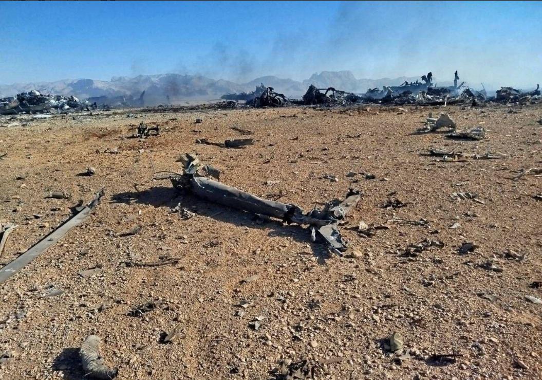 更关键的是,不少残骸碎片上都能看到疑似弹孔和弹片冲击造成的破洞,更像是被防空火力击中后坠毁,而不是地面受控爆破的状态。