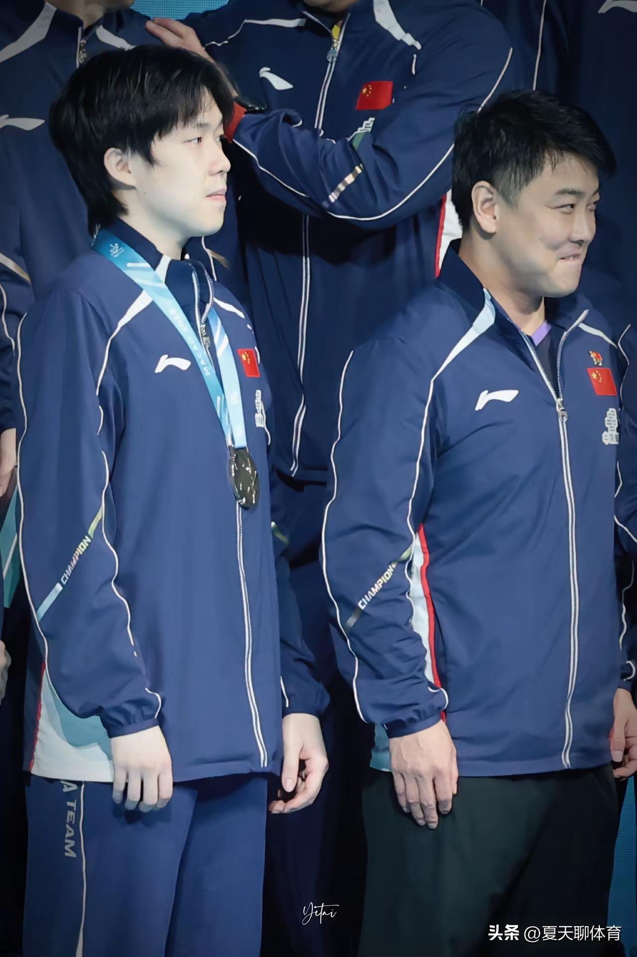 多年前王皓指导没想到,身后的小孩是现在掌握你命运的人,他让你激动的哭让你骄傲高兴的笑,那宠爱的眼神也是没谁了。王皓指导是幸运的,在自己教练职业生涯的困难时期,遇到王楚钦这么好的弟子,他有担当重情重义知感恩。
