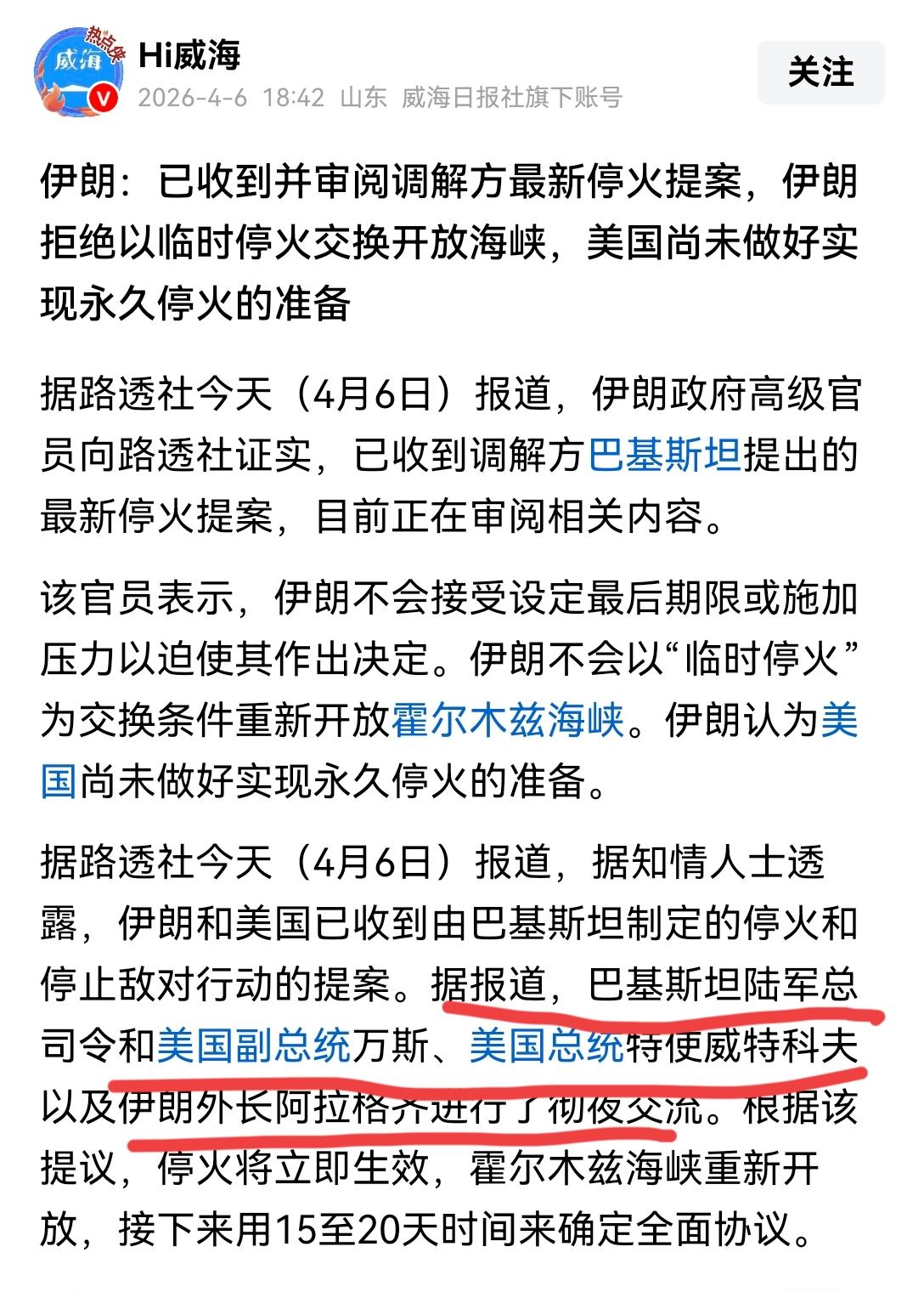 [吃瓜群众]美伊之战打到如今,双方都灰头土脸、损失巨大,但又找不到台阶下(川普发兵无依据,小哈以“殉道者之子”继位,一旦主张妥协,都存在巨大的“统治合法性风险”)[思考]这时,巴基斯坦“积极作为”,拿出了“方案”,但双方都是让“空了吹”的人在谈,真正说了算的,依然是“已读不回”[大金牙]按照某些俗套剧情——真要“谈成”,还得有人出来演一出“辕门射戟”才行[灵光一闪] 吕布:本来不关我事,演砸了咋整?[尬笑]