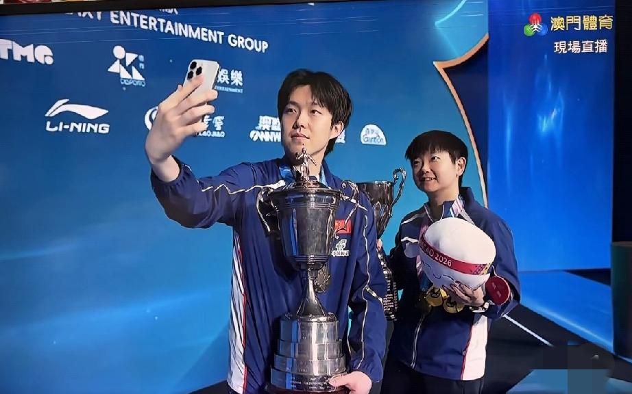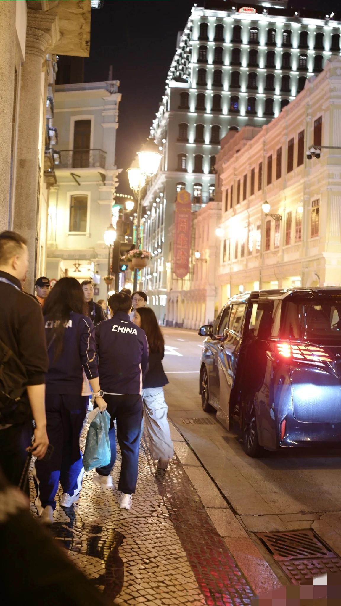 孙颖莎和王楚钦澳门夺冠后,深夜12点左右跑到澳门市政局门口拍摄,真是够辛苦。