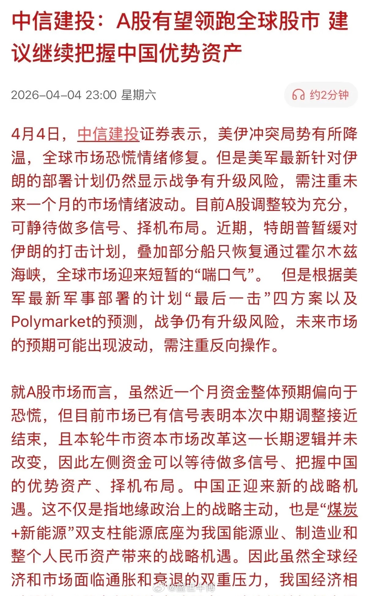 该券商说了大实话:A股面临外部风险尚未有实质性的缓解。不像中信建投一上来就说“A股有望领跑全球股市 ,建议继续把握中国优势资产”,完全是信口开河,毫无实话。自2026年1月以来,ETF不断减持A股,如今减持远超4000亿元。这只是ETF减持的数量,还有机构投资者和企业大股东减持套现。加上外部环境持续恶化,市场承受的压力越来越大,风险上升还在继续,A股又怎能领跑全球呢?说他睁眼说瞎话也毫不为过!