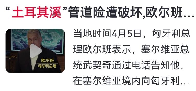 不止北溪!土耳其溪惊现爆炸装置,欧洲能源棋盘上的“暗战”已无底线 “能源动脉”再遭致命威胁! 2026年4月5日,塞尔维亚安保人员在境内“土耳其溪”天然气管道附近,赫然发现预埋的爆炸装置。紧急排爆后,现场仍被严密封锁。总统武契奇直言:这是一场蓄意的破坏行动。 这条管道有多重要?它是俄罗斯天然气输往中东欧的生命线,仅匈牙利一国,超六成供应依赖于此。一旦出事,欧洲能源市场将地动山摇。 4月6日,克里姆林宫发言人佩斯科夫公开点名:结合乌方多次袭击俄能源设施的前科,此事“极有可能”与乌克兰有关。 戏剧性的是,乌方迅速否认,反指是俄方“自导自演”。恰逢匈牙利大选,这一指控让事件政治火药味十足。 从北溪疑云到土耳其溪惊雷,能源设施沦为大国博弈的棋子。欧洲的安全底线,正被一步步逼向悬崖。 对此,你有何认知度? 土耳其溪管道 欧洲能源危机 大国博弈