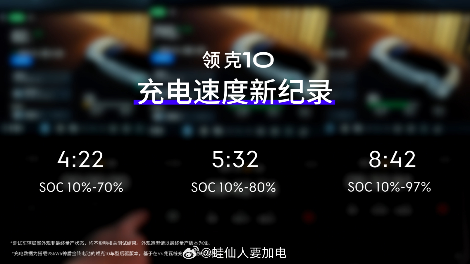 领克10搭载行业领先的900V高压快充平台与神盾金砖电池,在🐔哥旗下浩瀚能源V4极充桩上实测:SOC 10%充至70%,最快仅需4分22秒!这意味着,喝杯咖啡的功夫,就能补充几百公里的续航,彻底告别等待!更震撼的还在后面:从10%到97%的完整充电,也只需8分40秒!