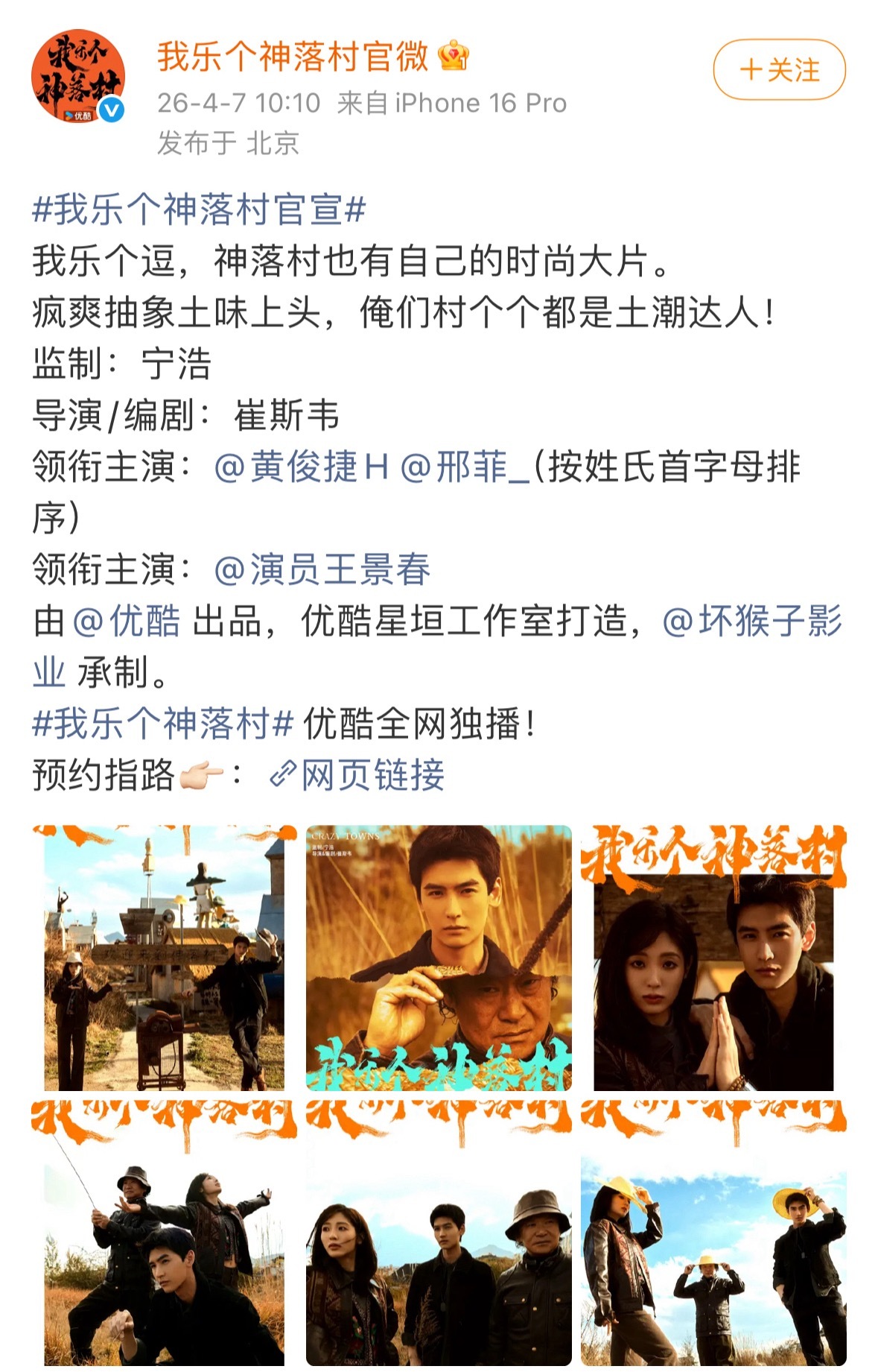 我乐个神乐村官宣,黄俊捷 邢菲 王景春主演,看这貌似挺有意思的一个剧诶。