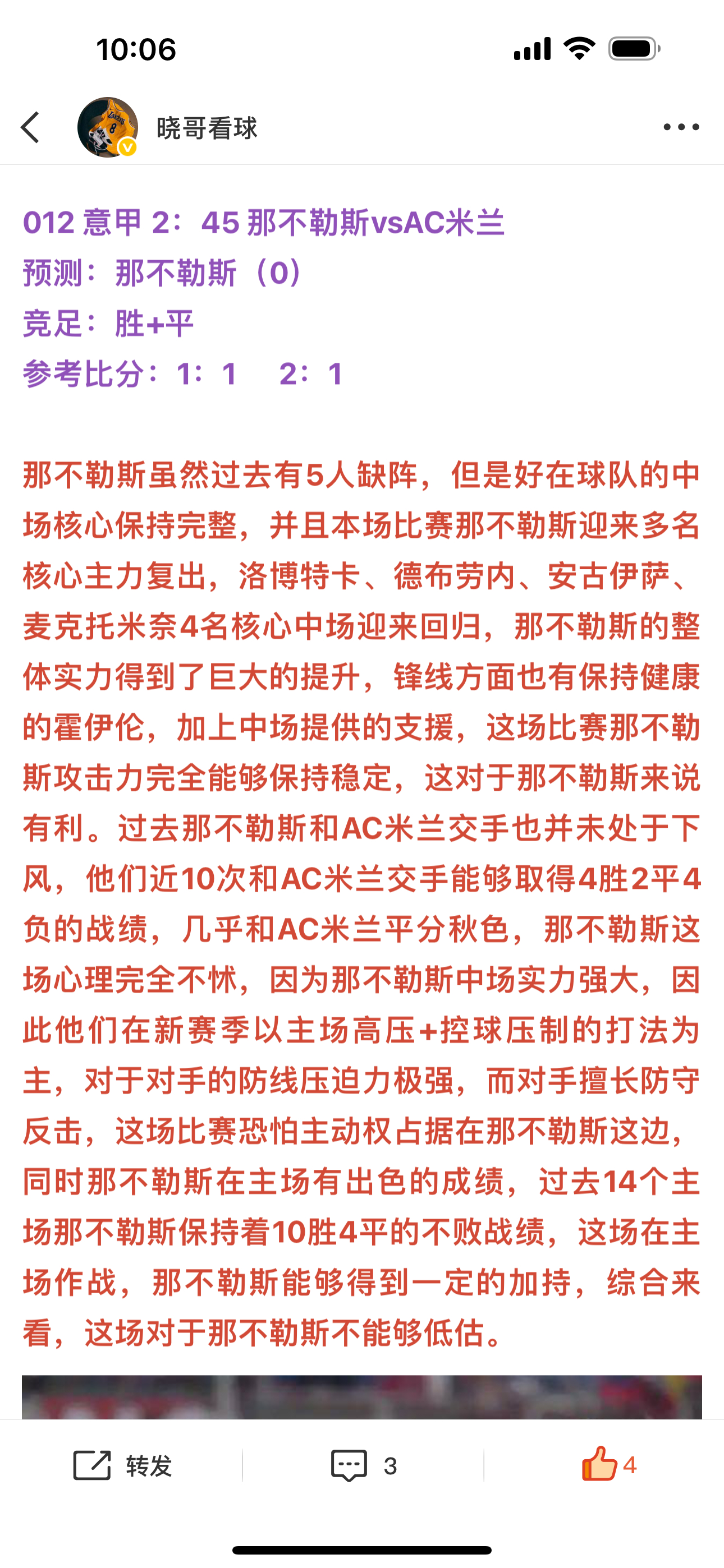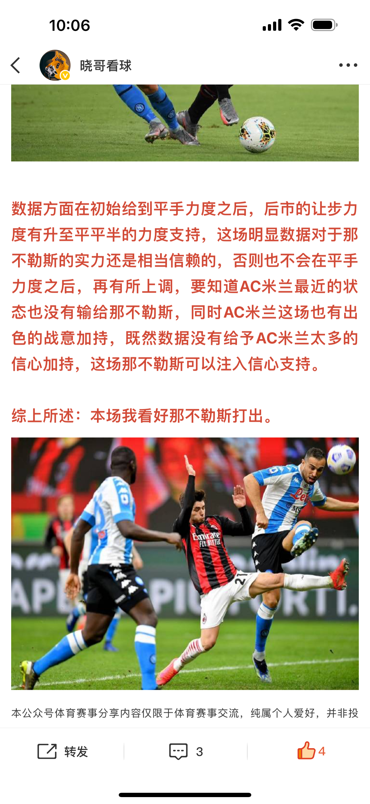 昨日公推那不勒斯成功收获好评,这场比赛我在赛前就提到了那不勒斯的中场能力强劲,这场比赛进攻不算华丽,但是中场的厮杀确实厉害,那不勒斯中场53%的控球率几乎没让AC米兰形成太多的反击机会,在那不勒斯不断高压的中场冲击下,最终AC米兰防线破碎,这场好评合理。体彩体育赛事那不勒斯足球预测ac米兰