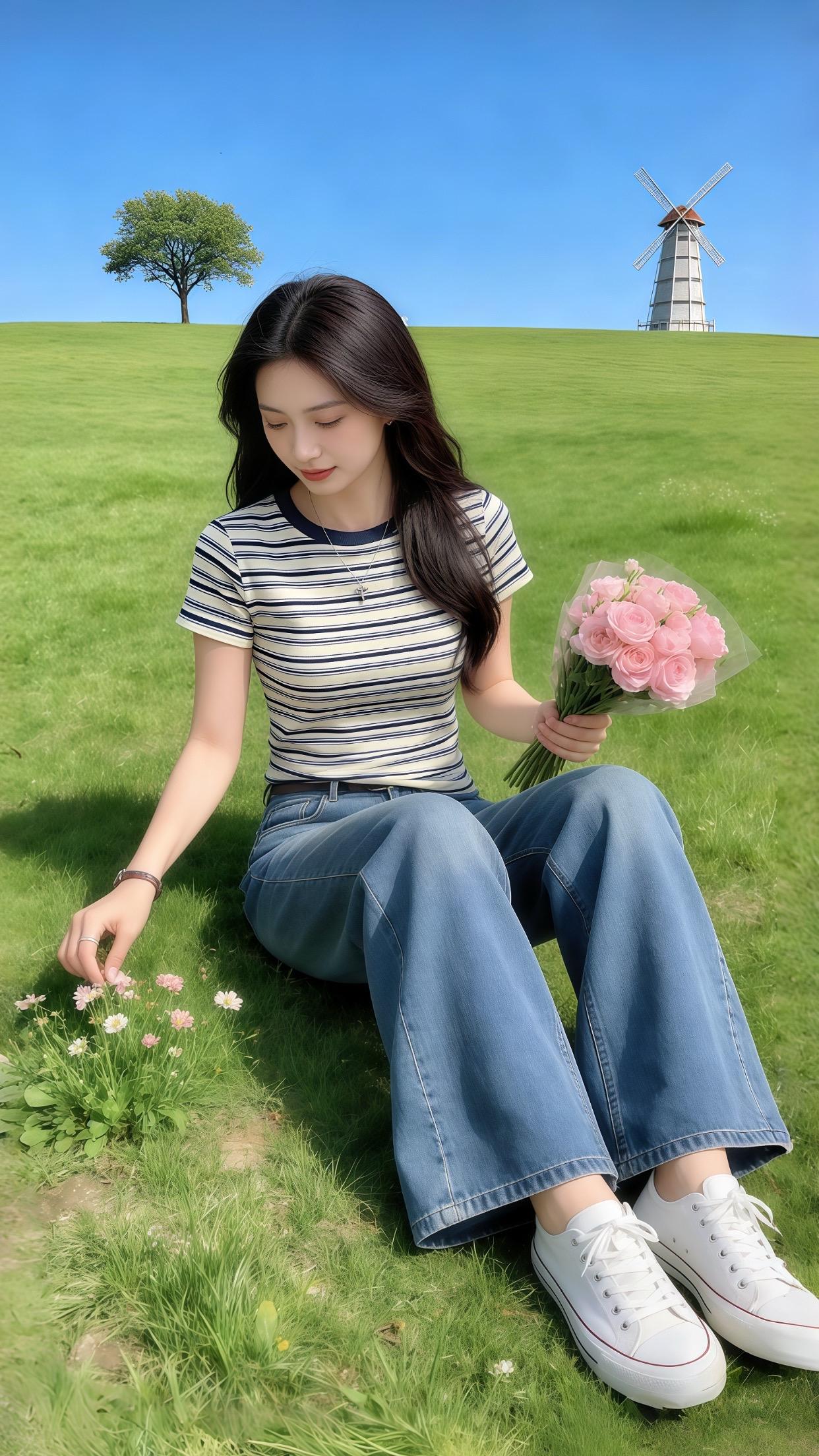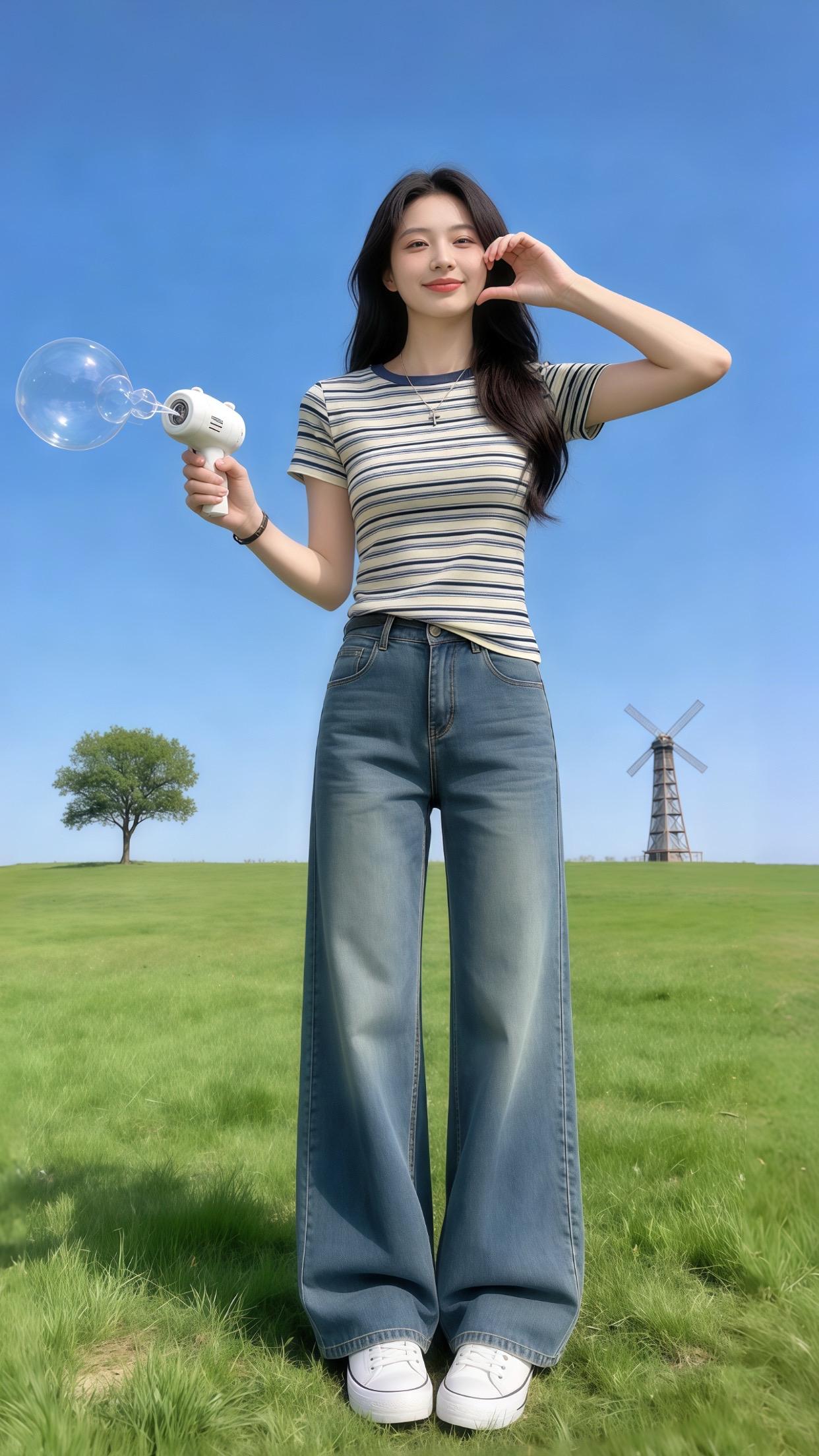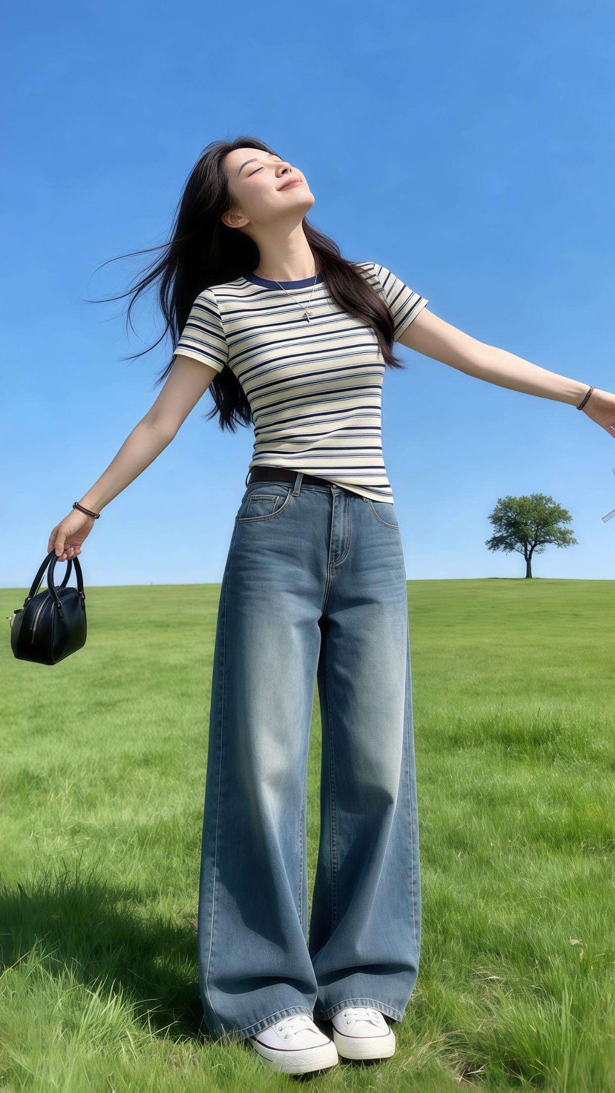 早春姐感穿搭 撞色条纹短袖T恤 春夏姐系气质穿搭 短袖T恤 时尚穿搭