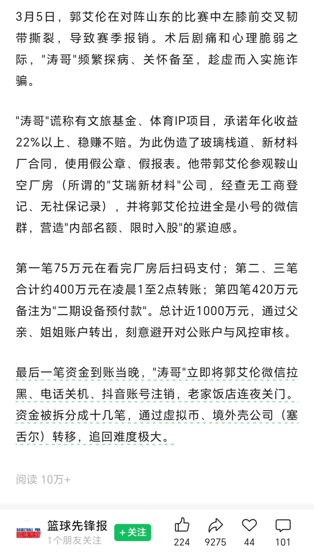 听见没?郭艾伦没有被骗! 沈阳警方:既然没有被骗,那我们还查个啥?结案!对了,报