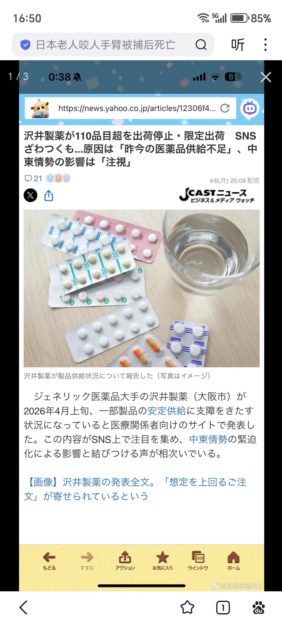 厚劳省有关仿制药这制度再不改革估计以后哈基🐌真的要无药可用了 日本仿制药大手 泽井制药 超过110种药品停止出货或限制出货,主要还是图三的原因,原报道说中东危机还没传导过来