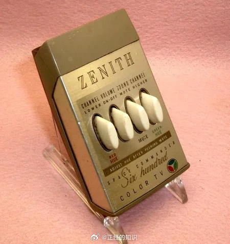 20世纪50年代早期的无线电视遥控器无需电池,因为其按键像小锤一样敲击产生不同的