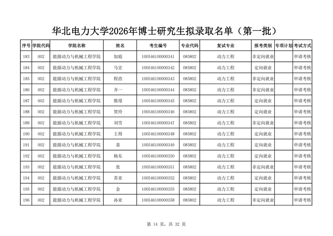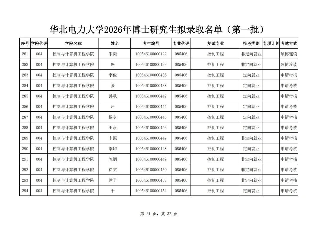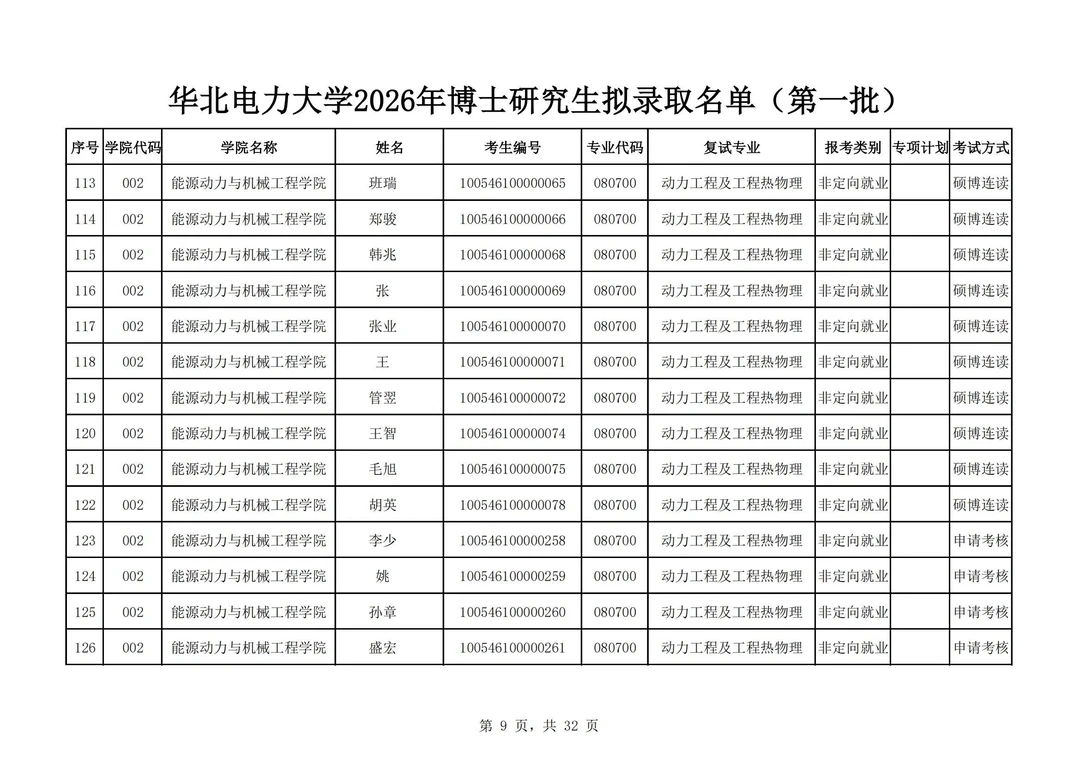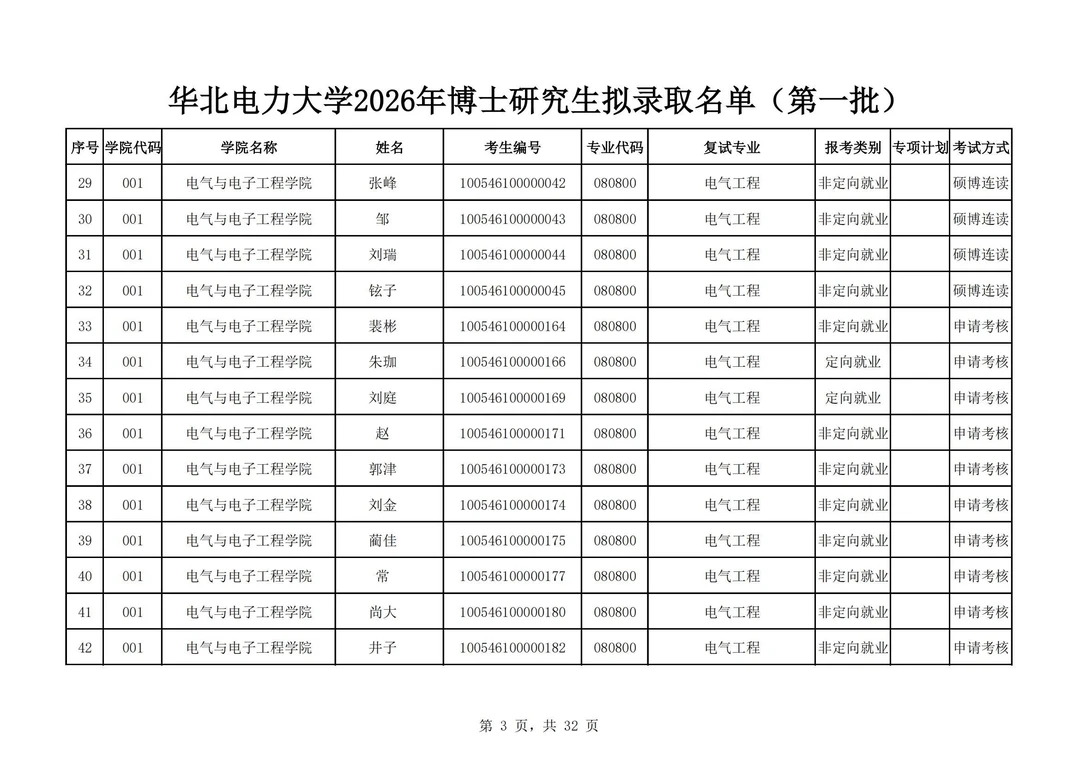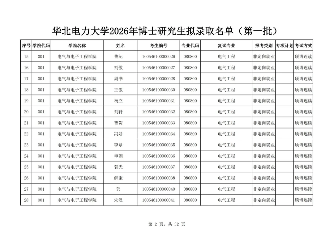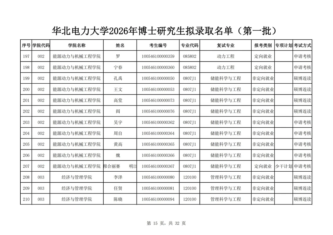 华北电力大学2026年博士研究生拟录取名单