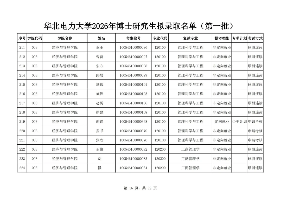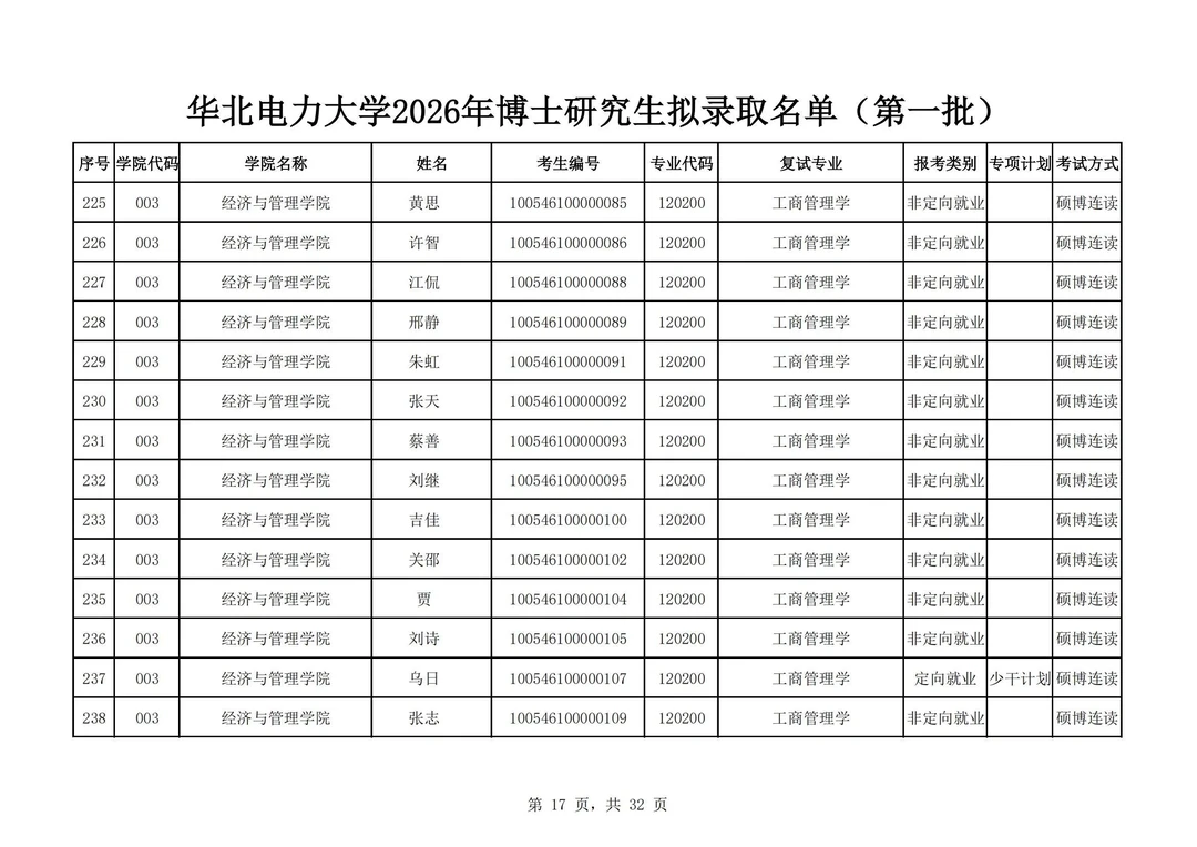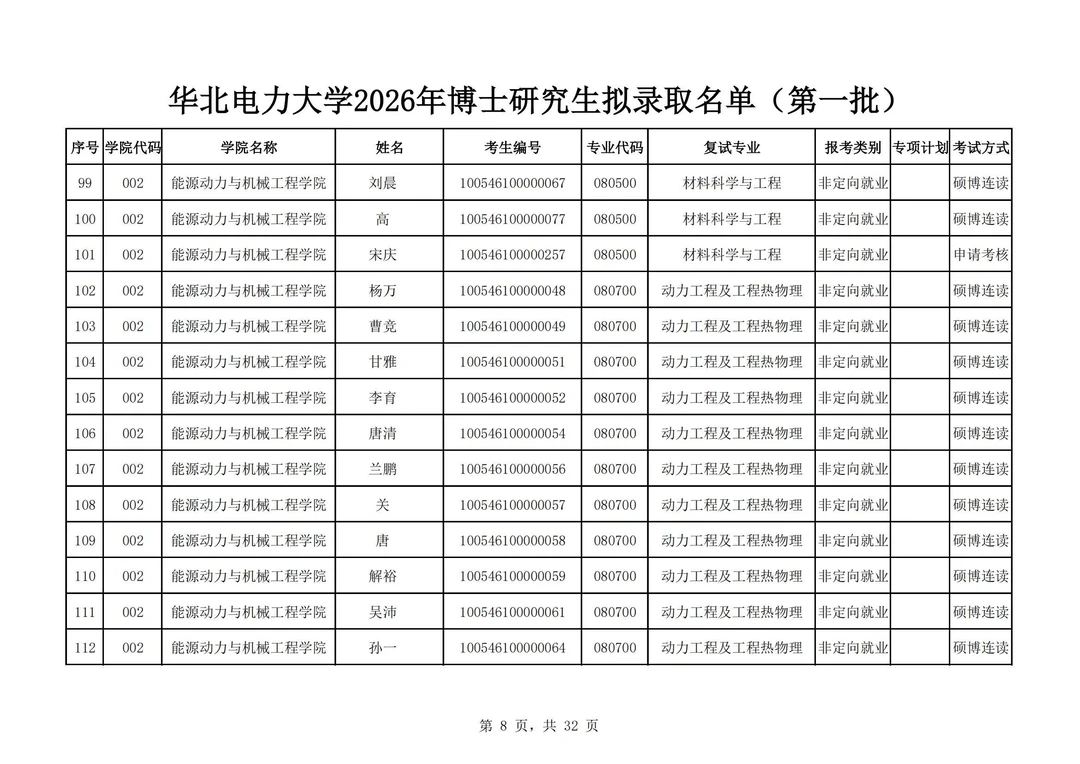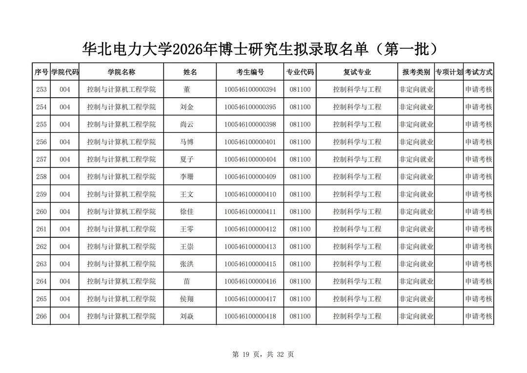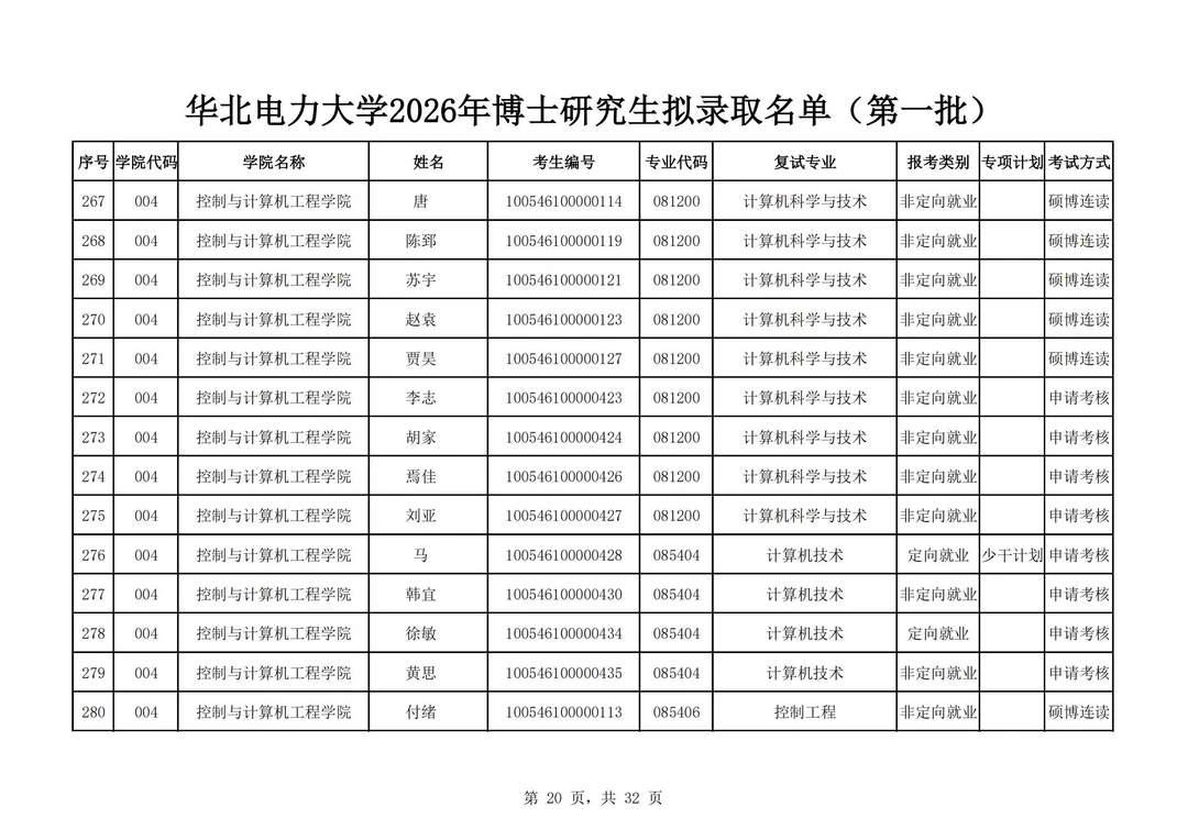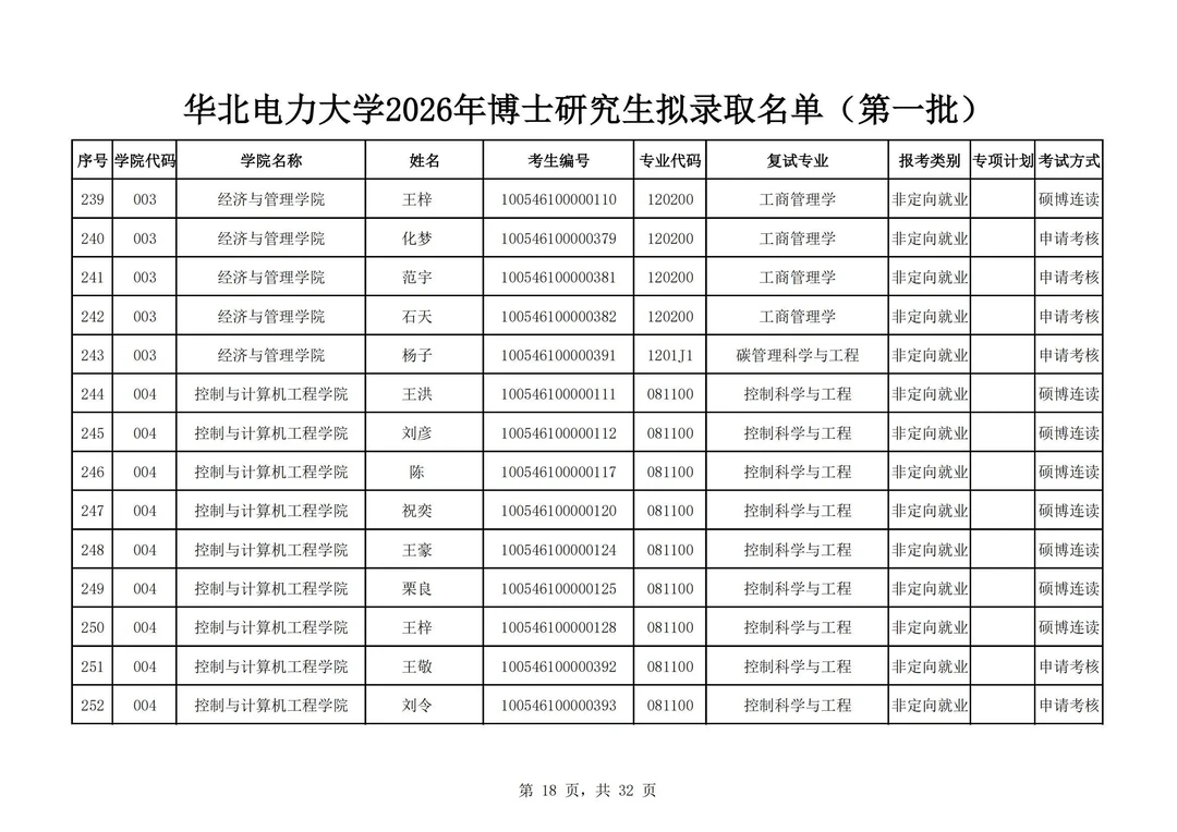 华北电力大学2026年博士研究生拟录取名单