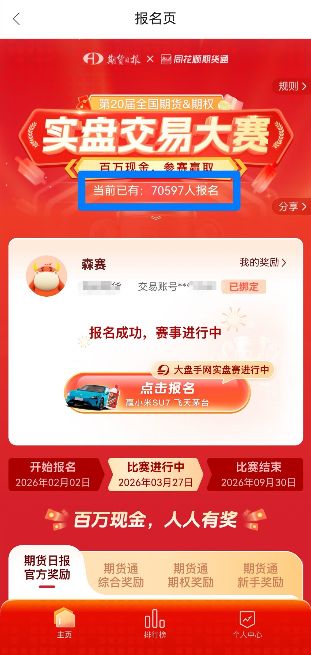 突然想起来今年自己报名了期货日报举办的实盘大赛,我最近忙着出差调研写稿没操作,刚一看排名,居然排在 27873 位,一共 70597 人报名。