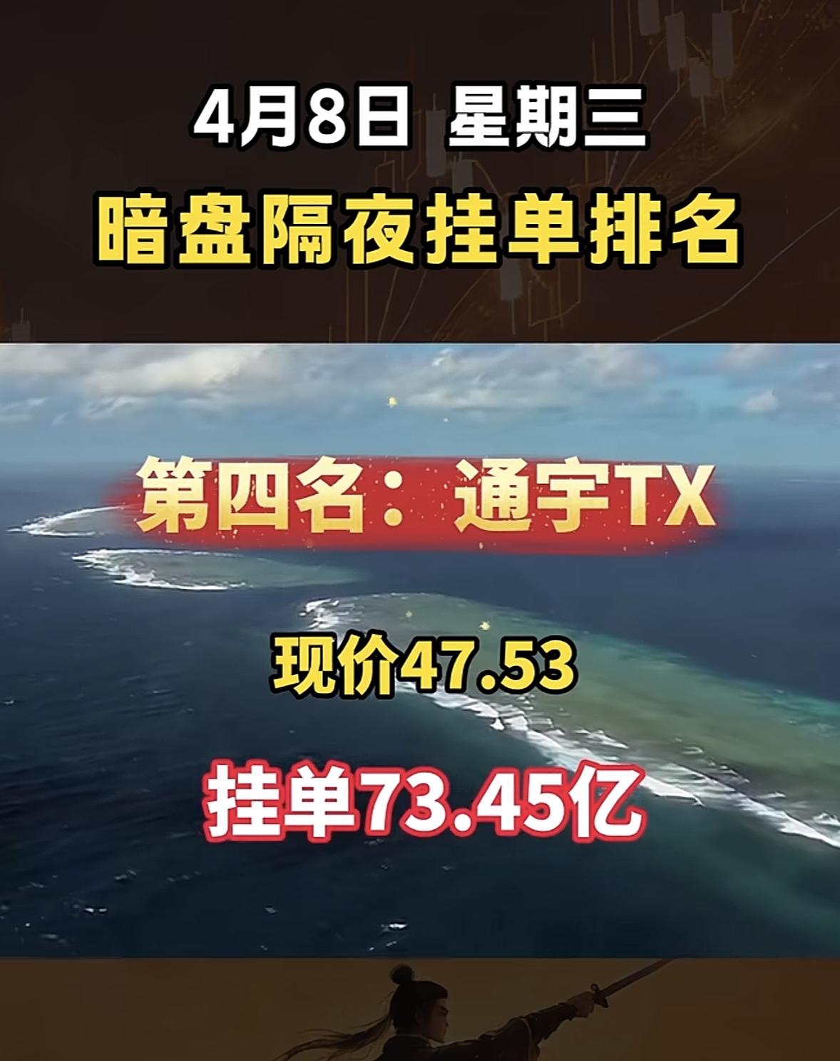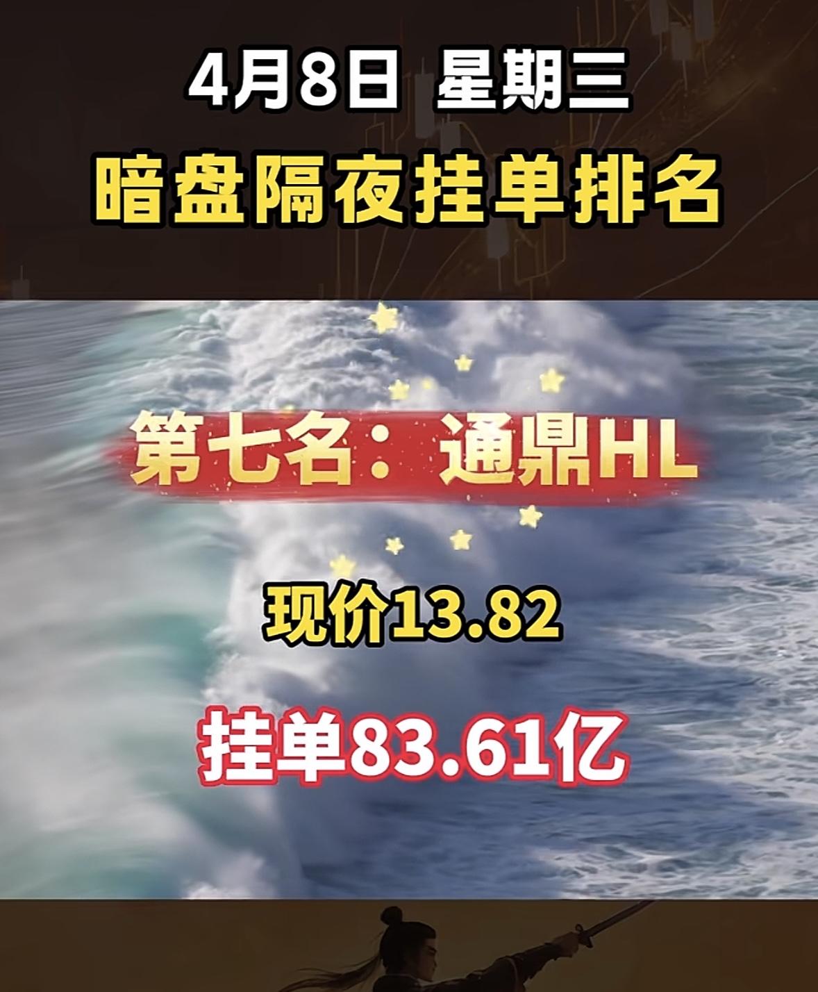4月8日周三暗盘隔夜挂单排行榜出炉 4月8日暗盘隔夜挂单排行里,通鼎互联排第七名,现价13.82,挂单高达83.61亿,这数字相当惊人。4月7日,通鼎互联盘中涨停,报13.82元/股,成交6.31亿元,主力资金净流入1.97亿元。今年以来它股价涨了130.33%,近5个交易日涨18.63%,近20日涨25.75%,近60日涨幅也有130.33%,还9次登上龙虎榜。通鼎互联主营光纤、通信光缆等业务,在光通信/光纤板块属低位补涨。如此高的挂单量,后续走势值得关注,说不定会有大行情。