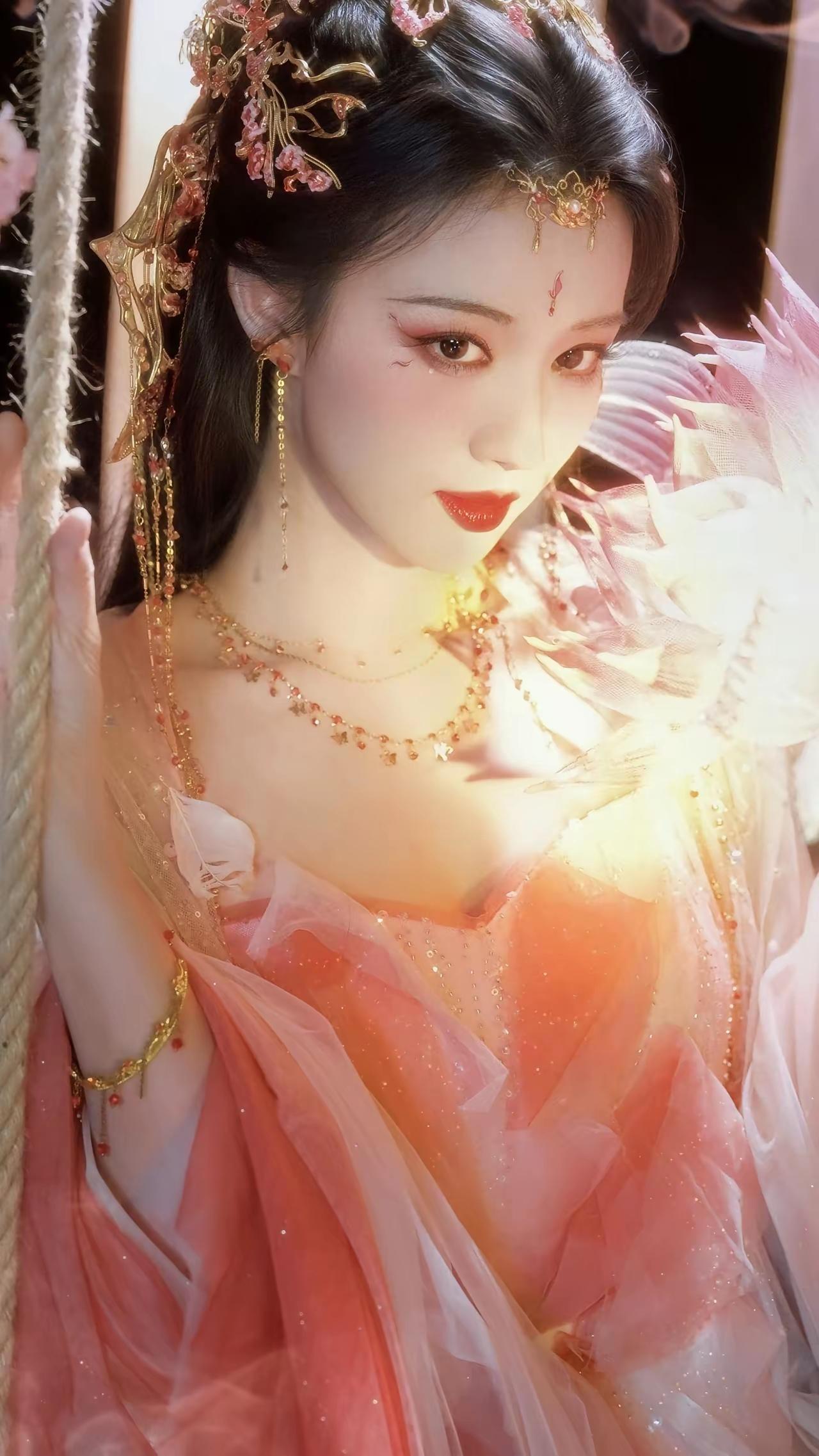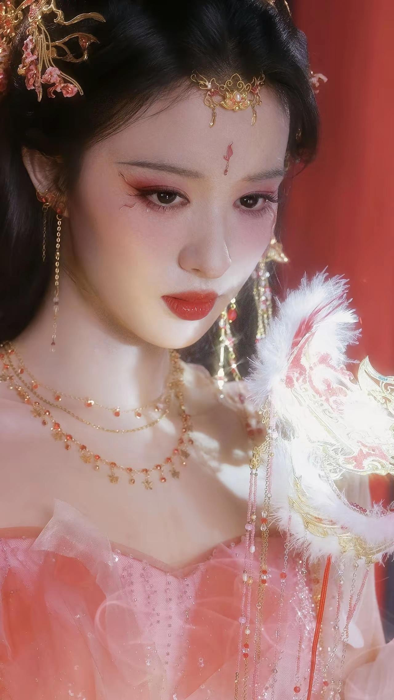 王楚然,金饰缀云鬓,粉纱笼清辉。